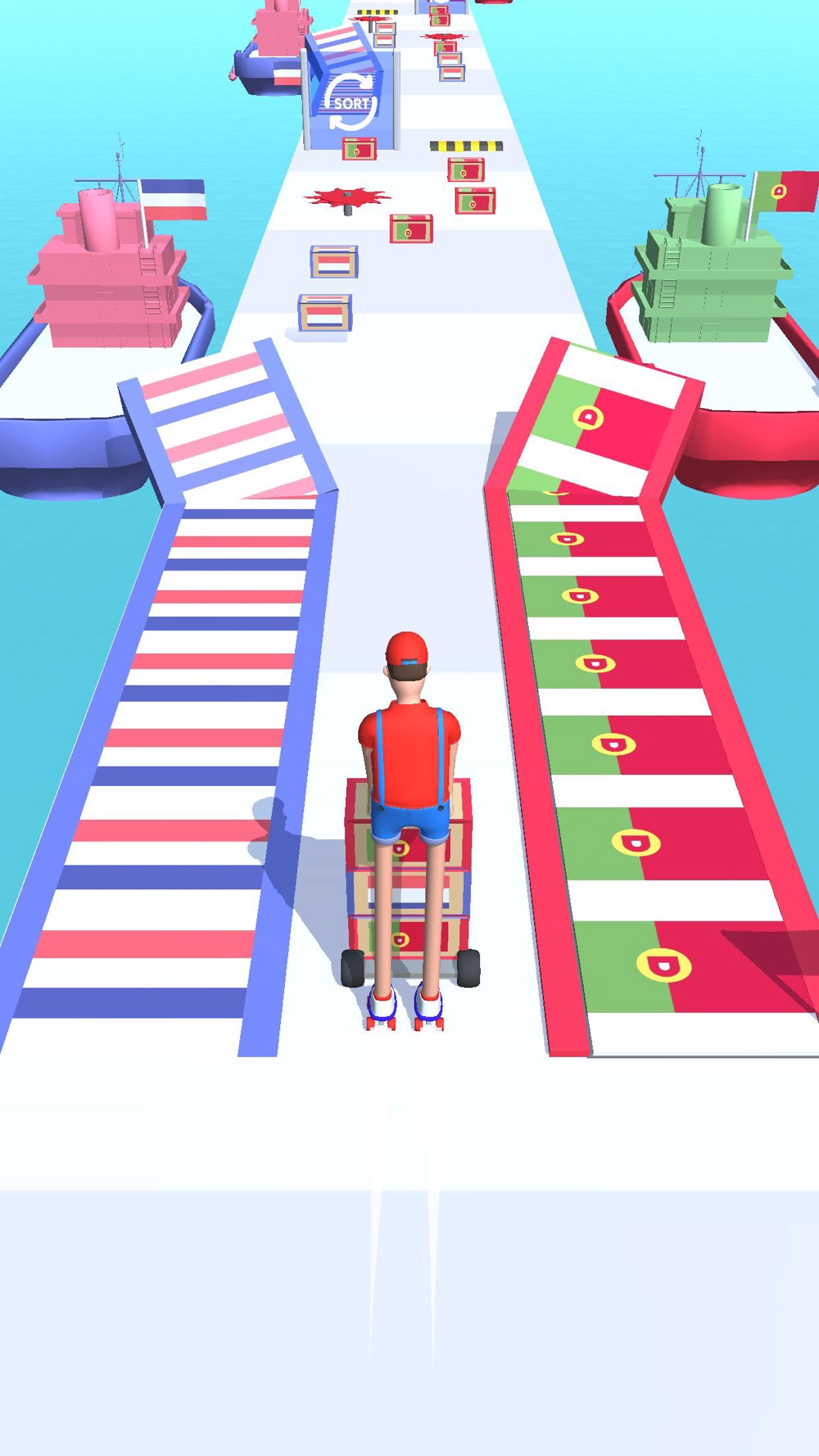 Countries need you! Stack cargoes and load on board. Sort them according to country flags.