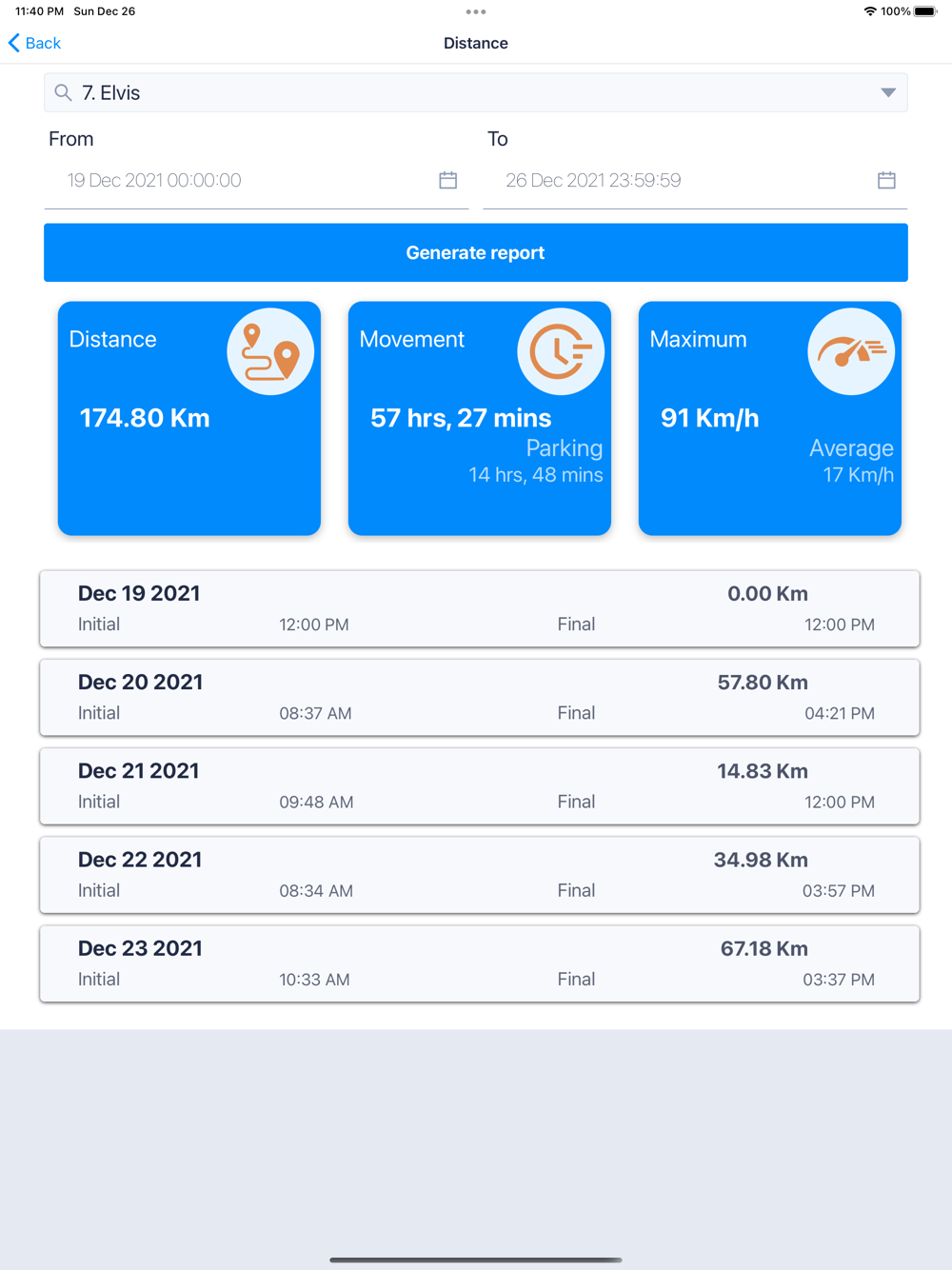 You can share the real-time location of your assets, create Geofences, activate notifications via Push, email, and SMS, view the history of your asset journeys, create reports of distance traveled and the current status of your vehicles.