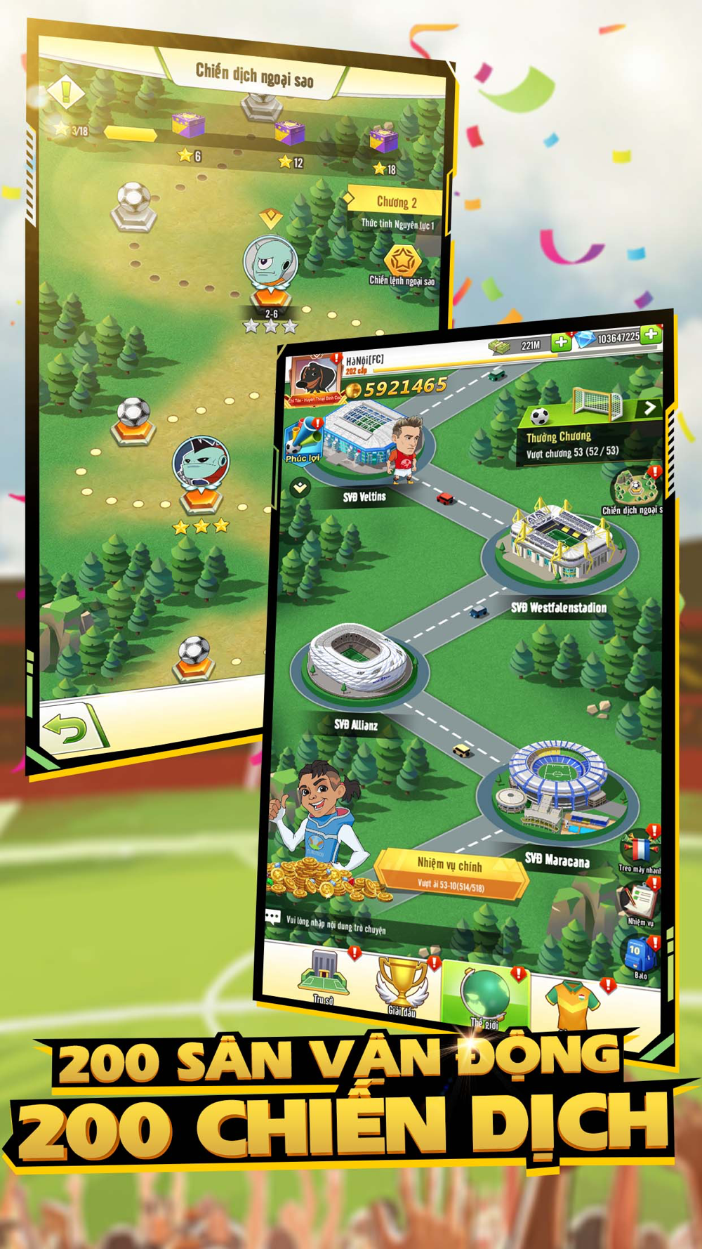 4. Siêu sao bóng đá Mỗi cầu thủ có những kỹ năng độc đáo riêng , cùng với những drama đi suốt cuộc đời khiến họ trở thành những dân chơi bóng và đá thực thụ . Với kế hoạch huấn luyện và đào tạo bạn có thể định hưỡng phát triển và khơi dậy những tiềm năng cả trong và ngoài sân cỏ , xây dựng 1 CLB đỉnh cao .