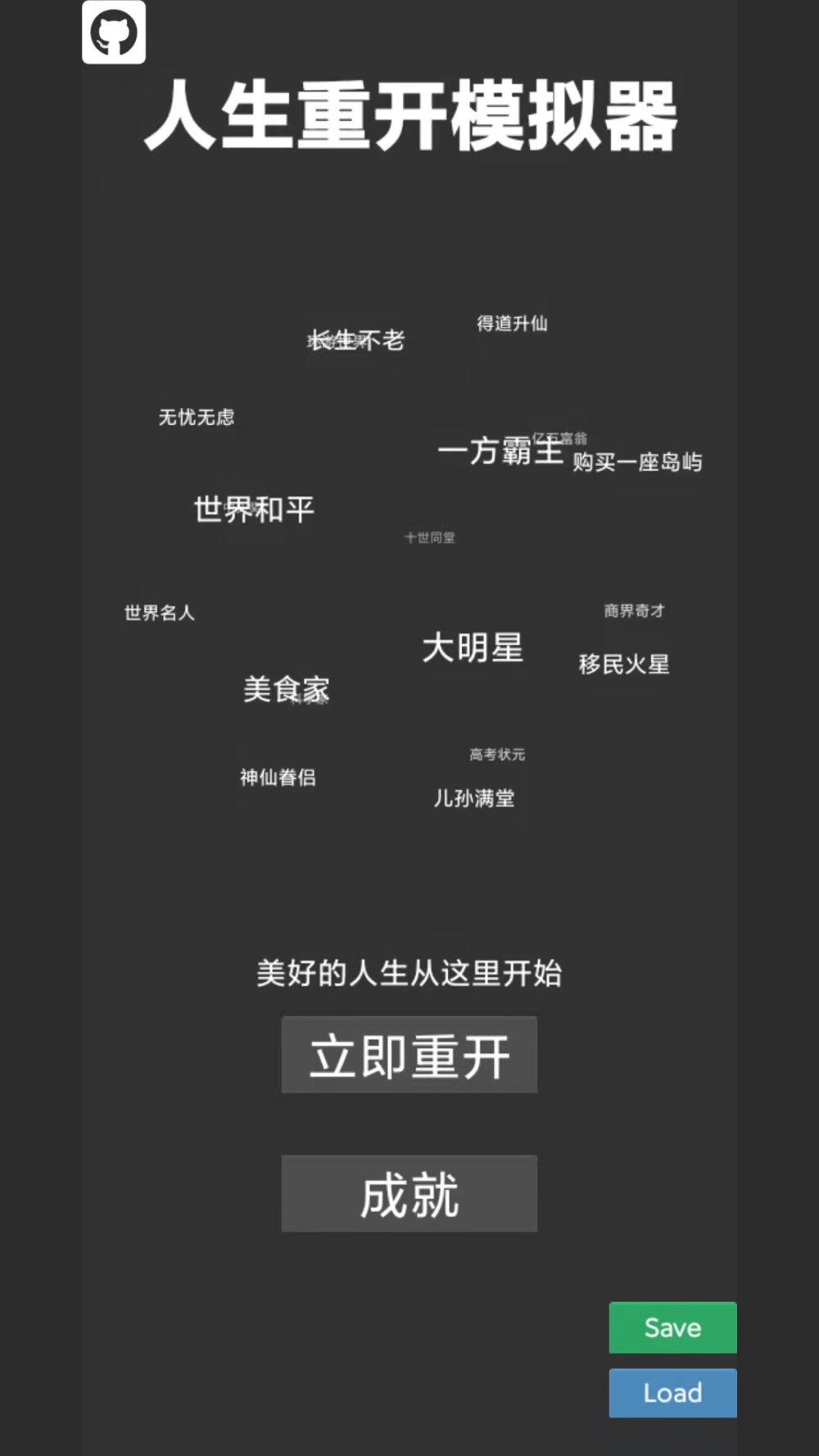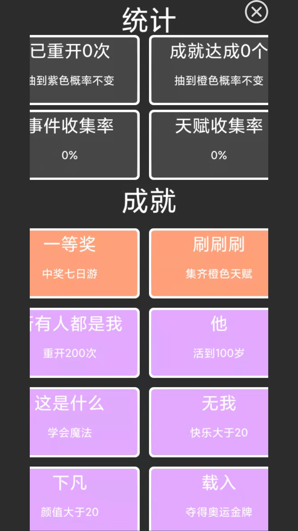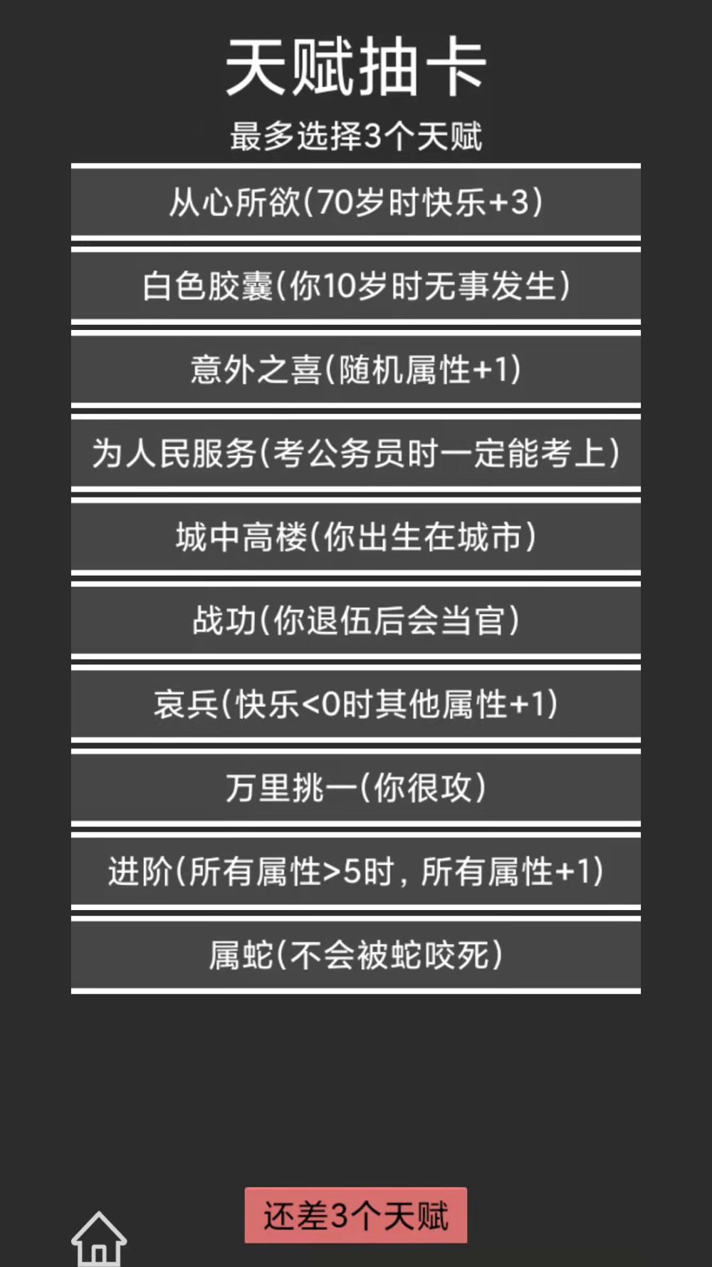 每次人生重开选择天赋和属性,体验不同人生的全新体验!