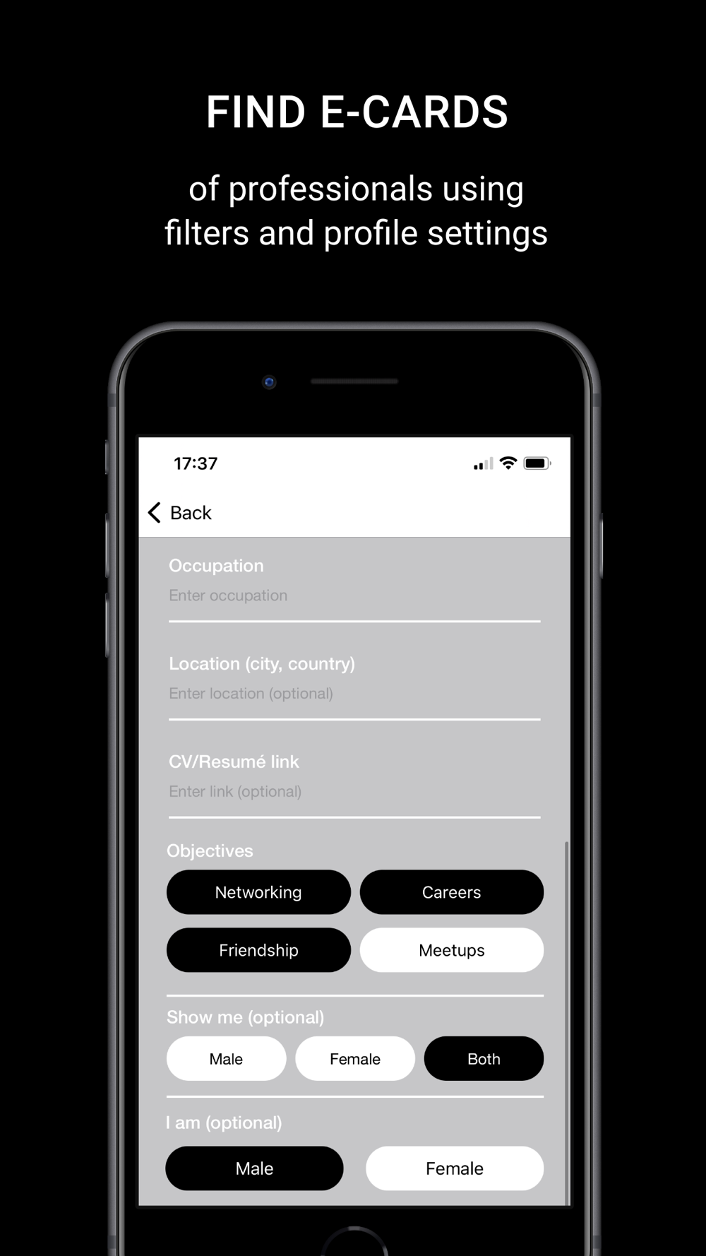 THIS IS NOT A DATING APP – a purely communication app for networking and finding people from different professional fields to share knowledge and experience with each other.