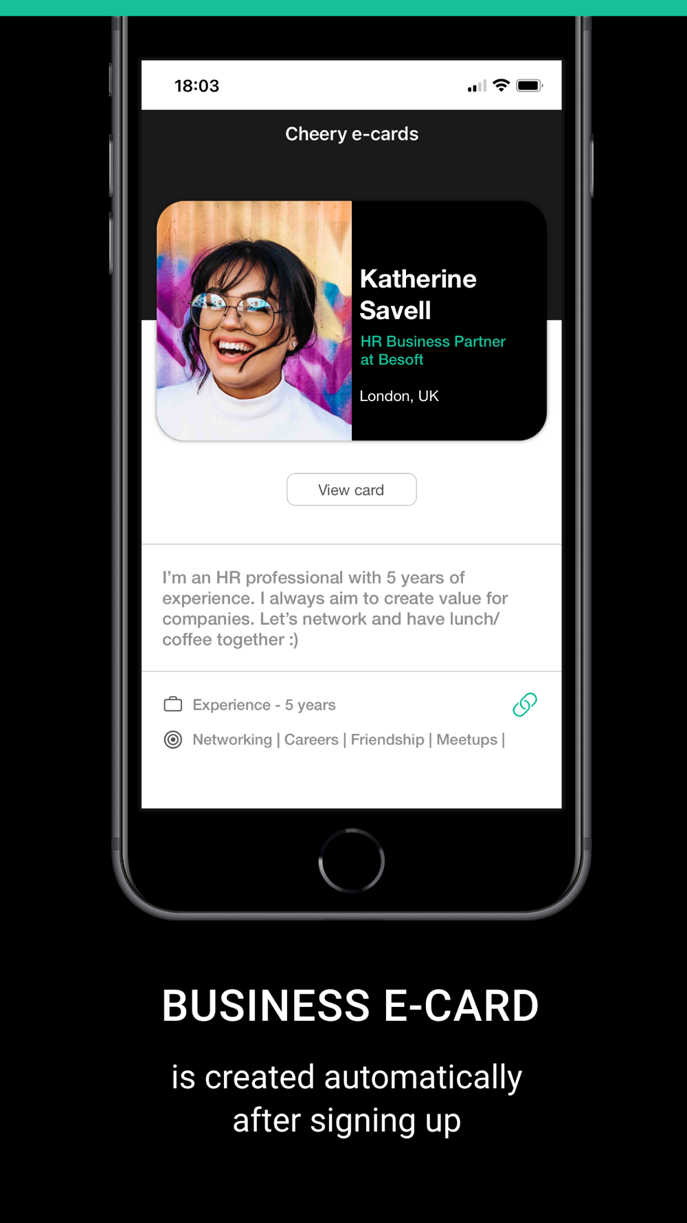 - create and share your digital business card with anyone,
