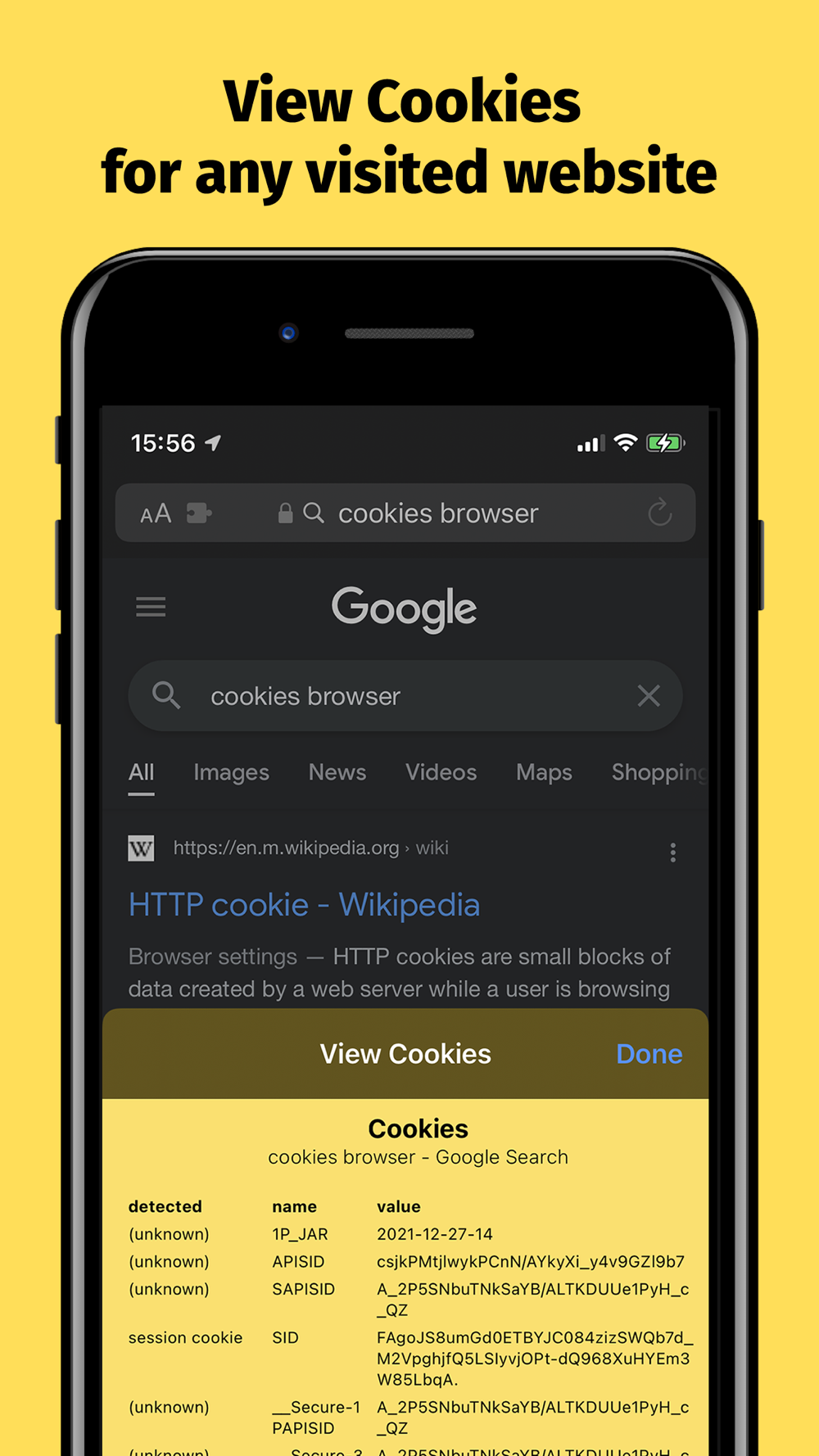 Simple extension to view active cookies of a website in Safari.