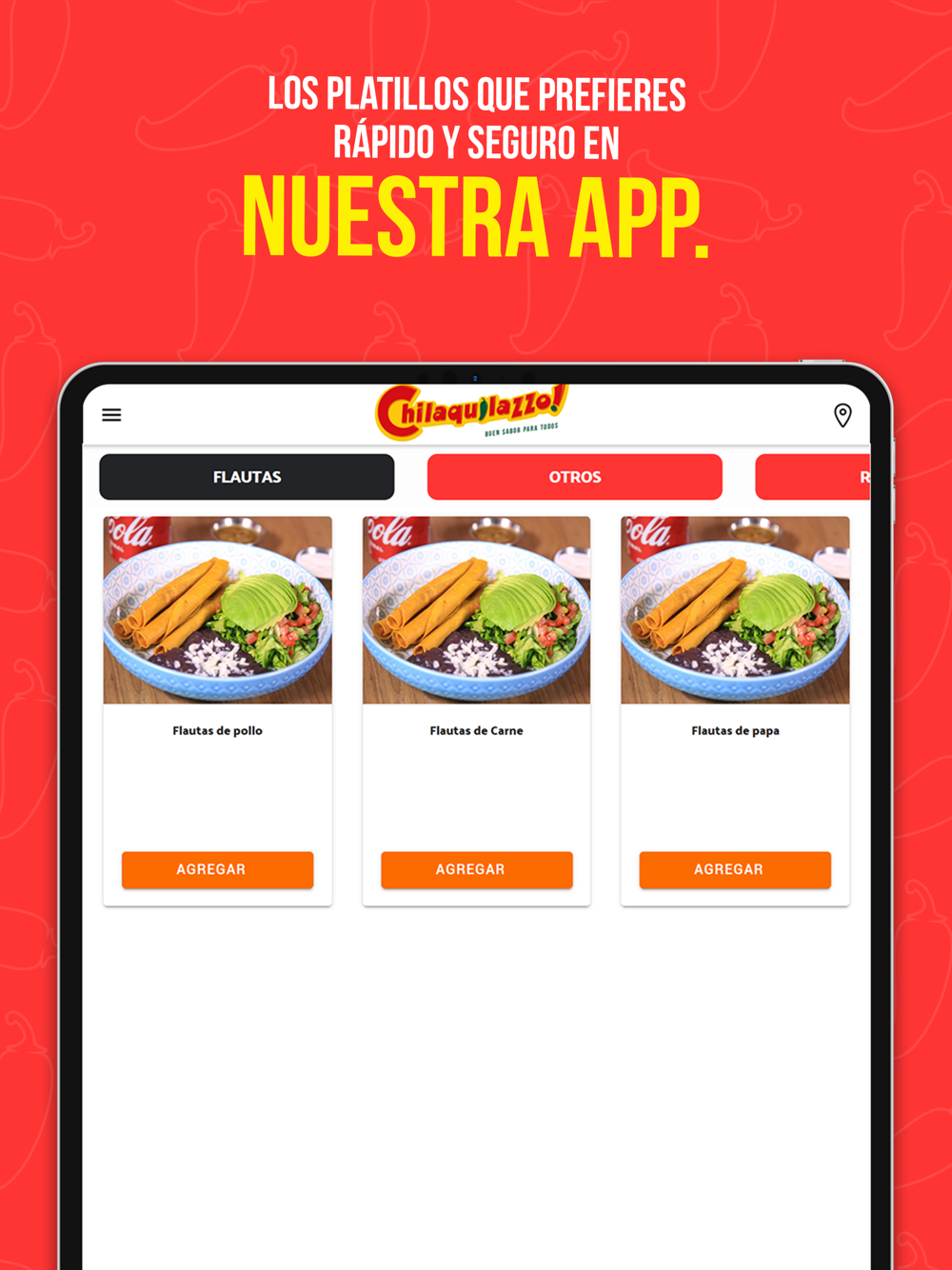 Descarga nuestra app, ordena y recoge nuestros mejores platillos para llevar, todo desde tu dispositivo móvil.