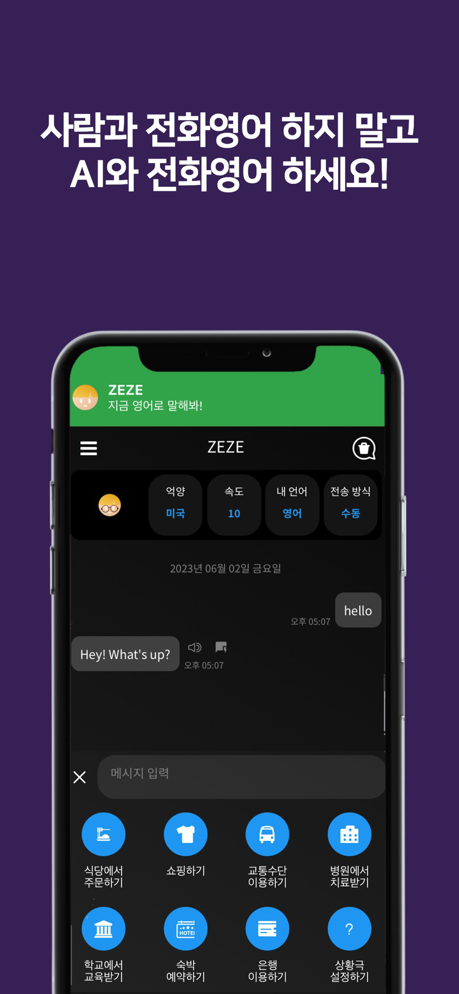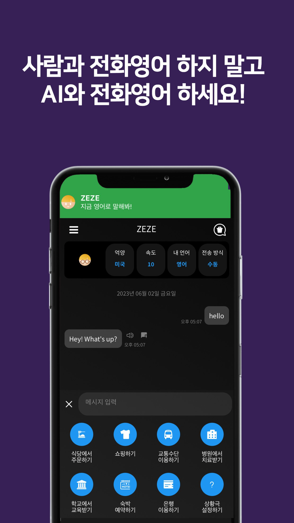 하지만 내 영어 실력을 신경 쓰지 않는 AI 영어 선생님과 대화한다면?