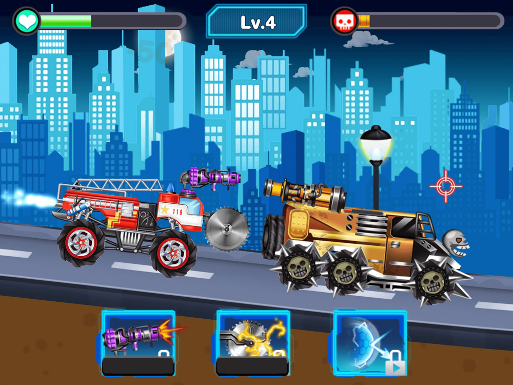 Monster Truck Battle Game covers dozens of fascinating armored truck cars...Choose your favorite truck cars! Tranform the racing cars like car weapons, top cannons and car wheels! Complete each battle arena level by defeating barriers such as robot monsters, alien machines and BOSS monsters! The more levels you complete, the more rewards you can get! Use level rewards to upgrade your car to super unbeatable truck cars!