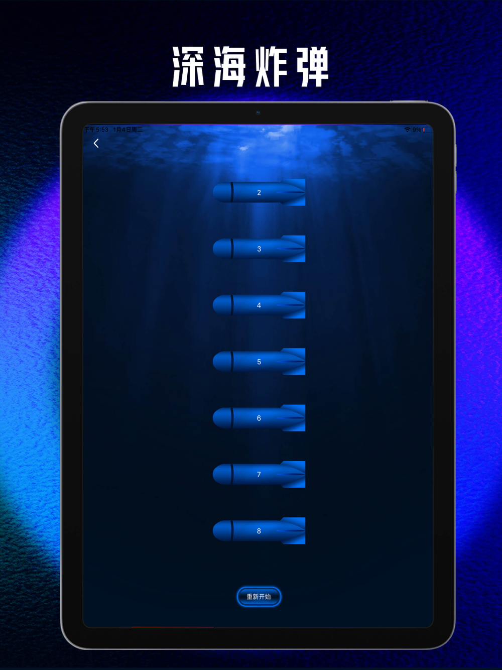 2.深海炸弹:只有一个炸弹会爆炸,看看谁能选中他