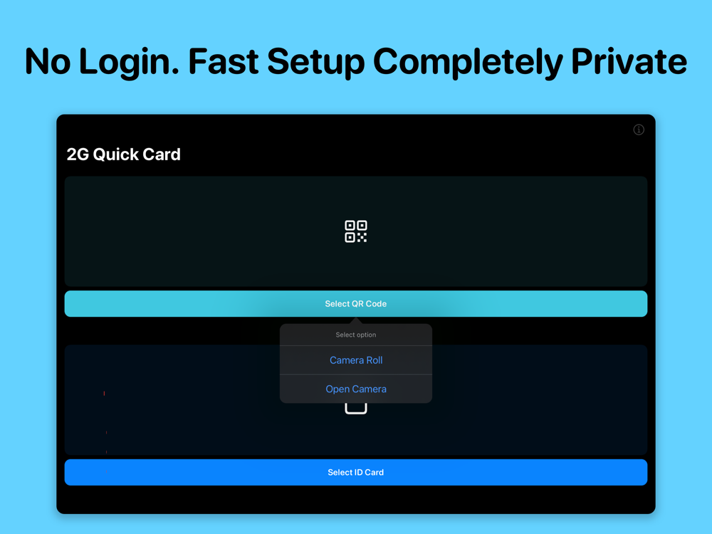 2G Quick Card makes displaying your QR Code and ID Card when you are required to extremely easy and fast.
