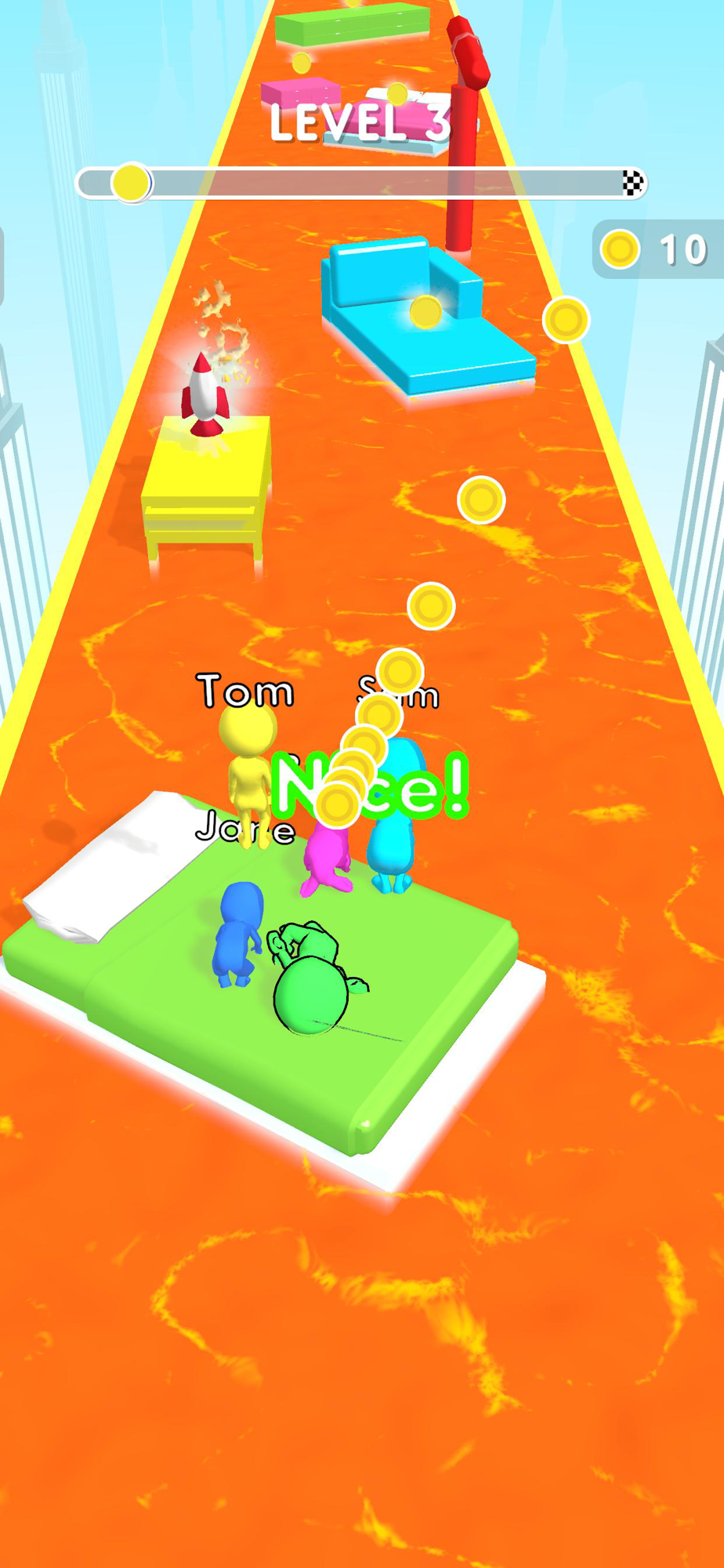 Jump over furniture and don't fall in lava because it is hot!
