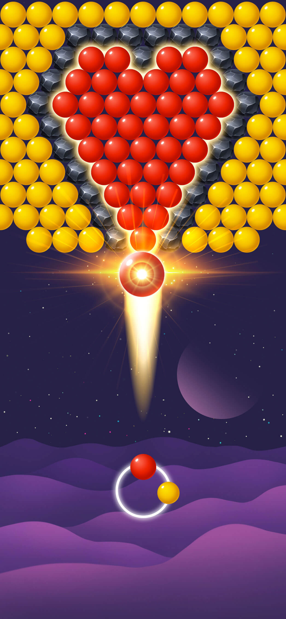 The operation is simple and easy to play, and the fingertips slide to Shoot bubbles and let the same color bubbles burst.