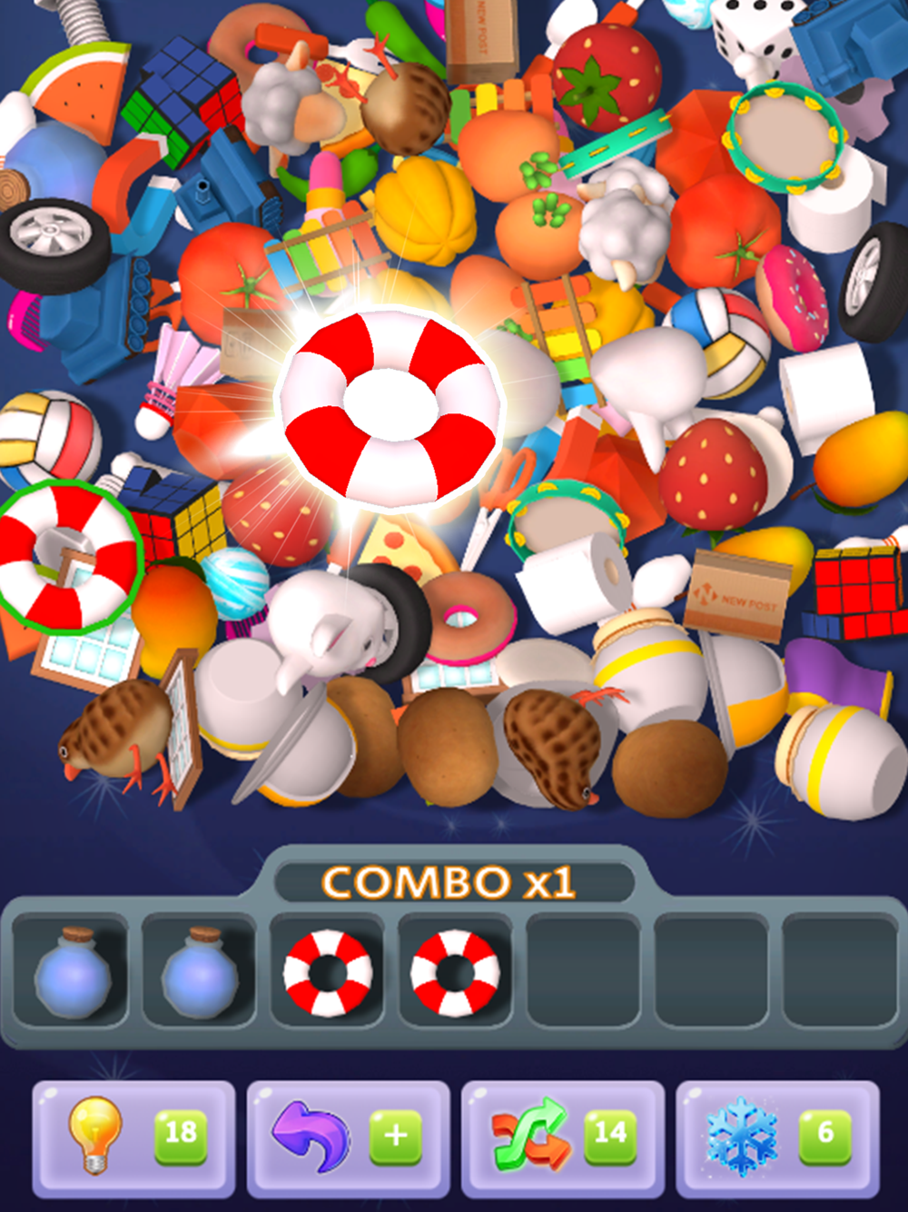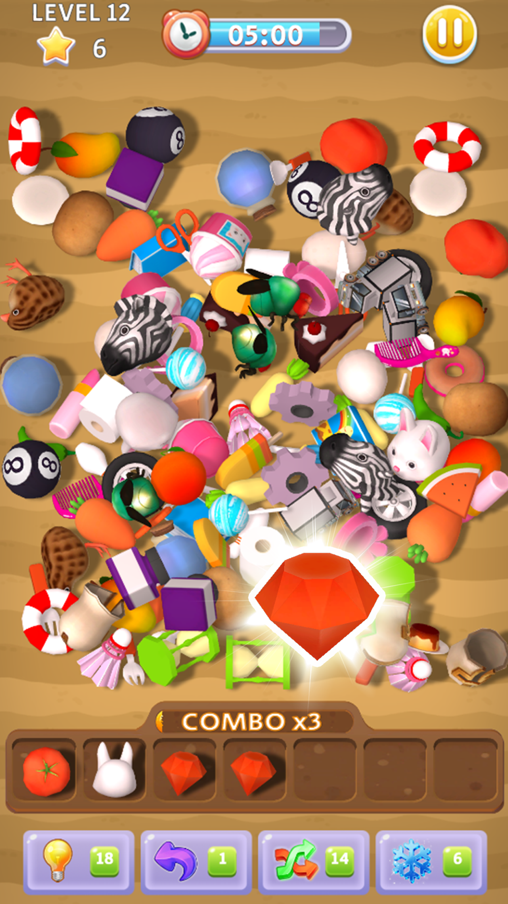 Within the specified time, the player must find the same three from the dazzling items, and then they can be removed, until all the toys are "cleaned up" and you can pass the level!
