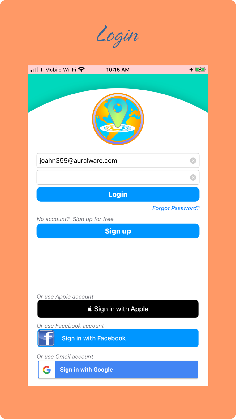 • Or Sign-up thru Apple, Facebook or Google Gmail account.