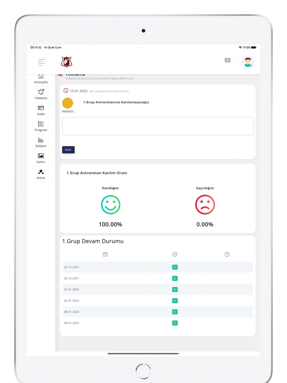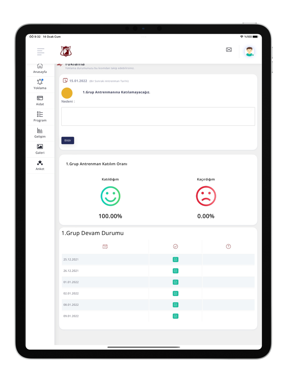 Eryaman Spor Kulübü Veli ve Öğrenci Takip Sistemi