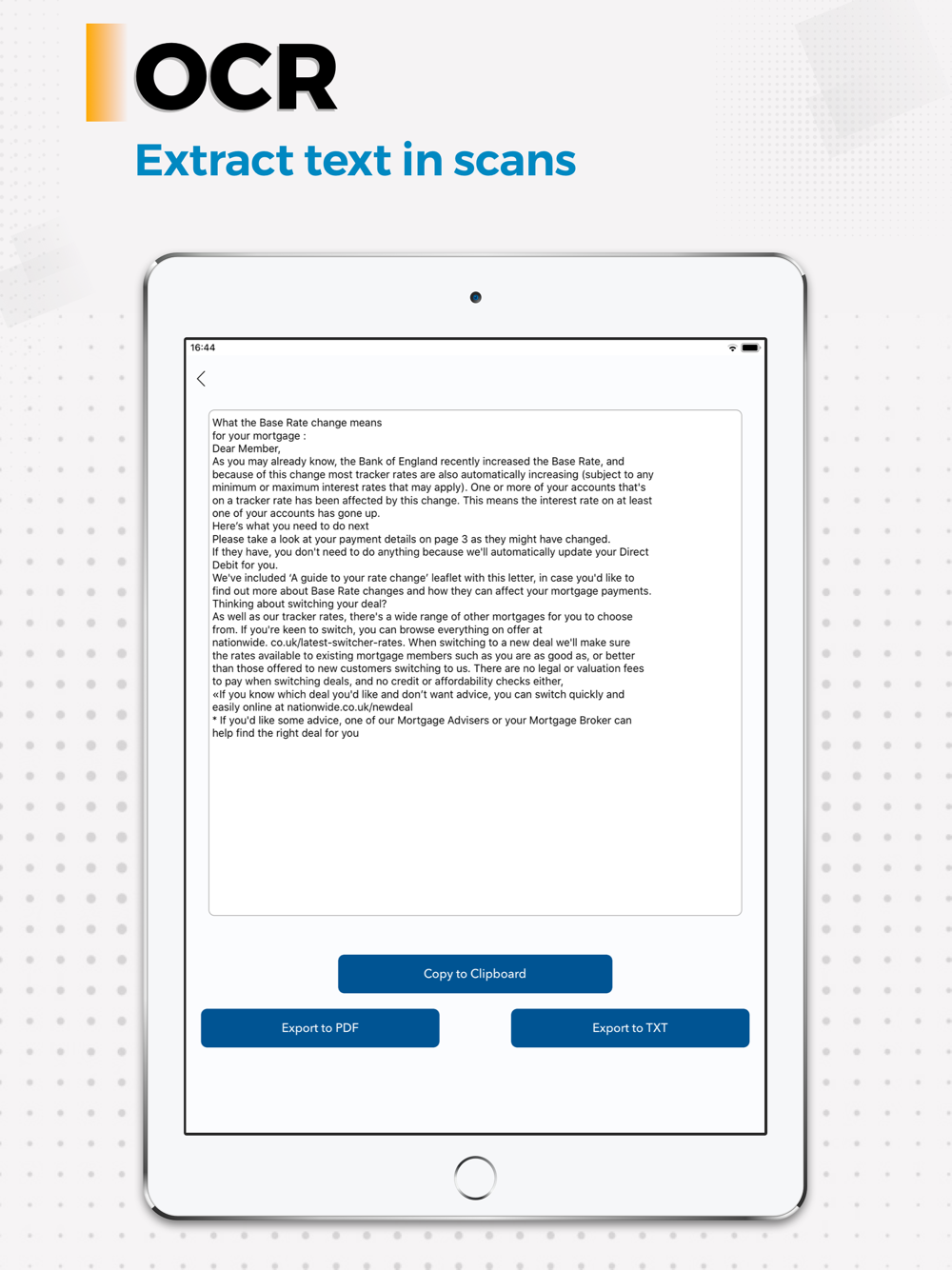 Store all your documents and sync them with iCloud or export them to your favourite cloud storage.