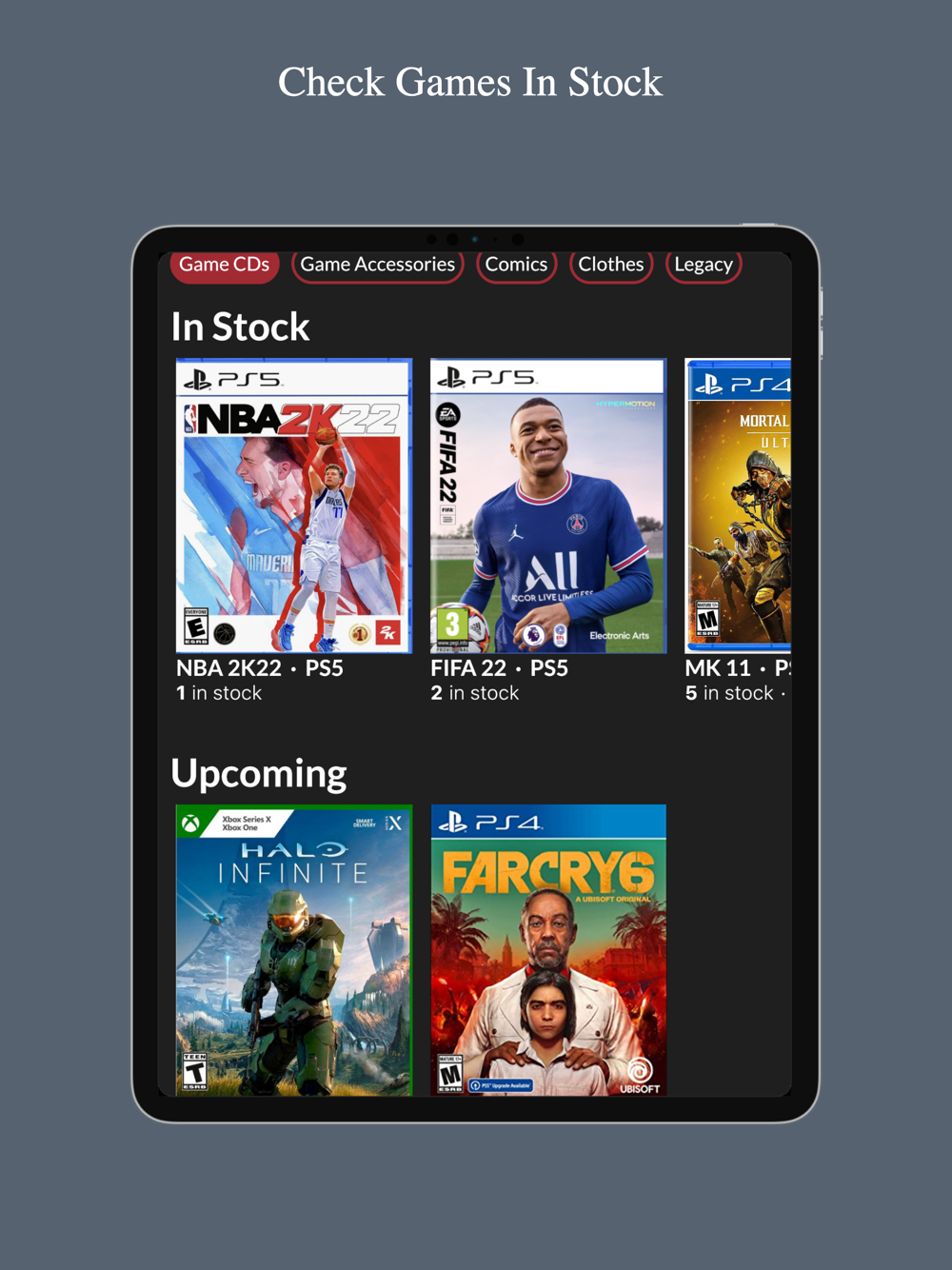 - Check what games are in stock to purchase