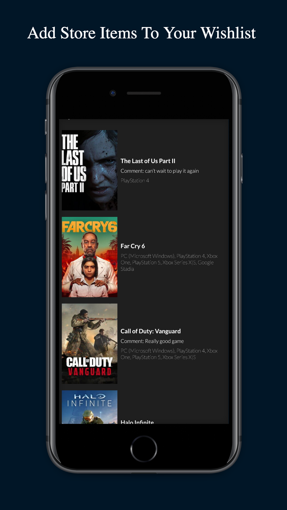 - Create your personal profile and add items to your wishlist