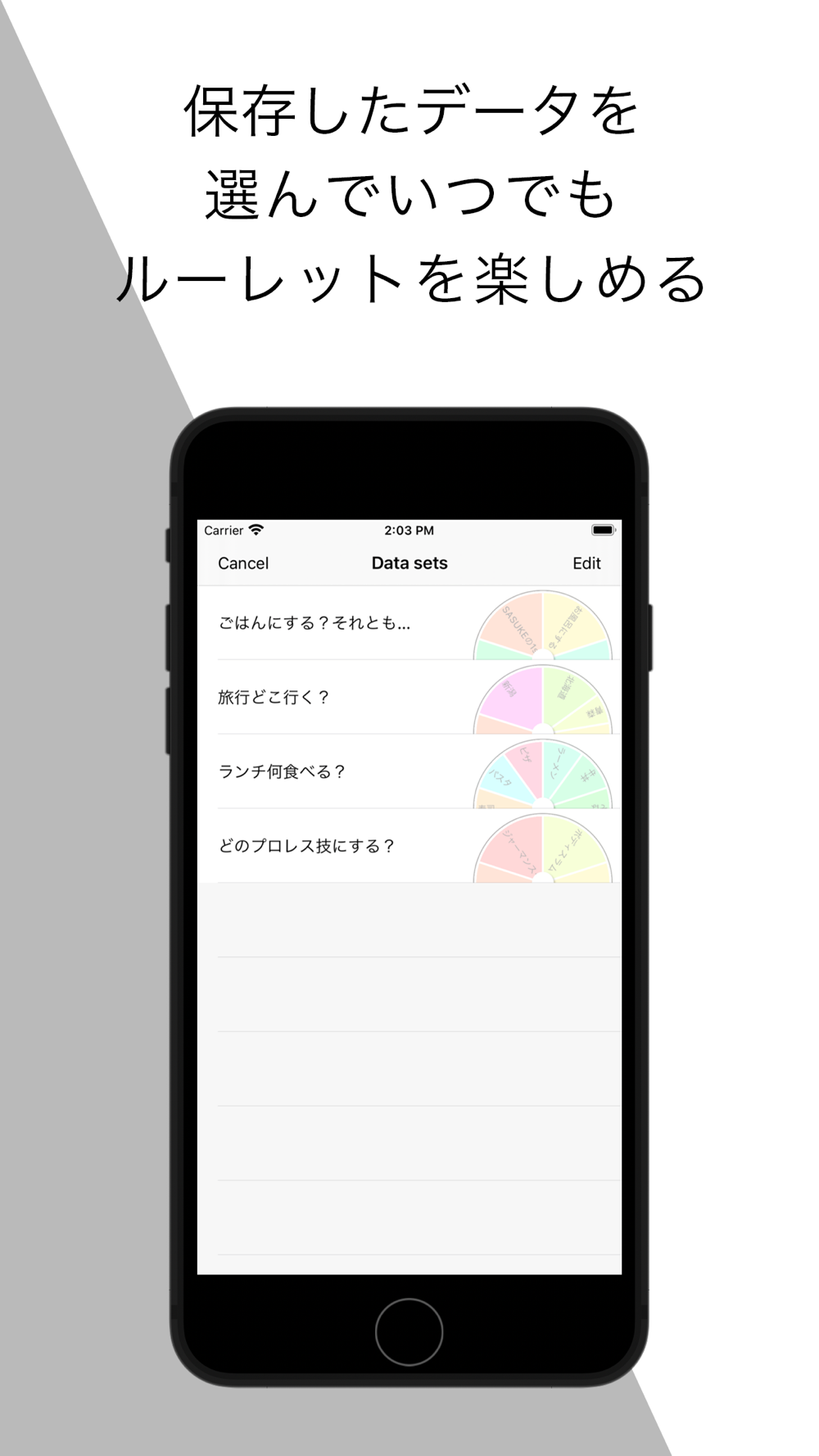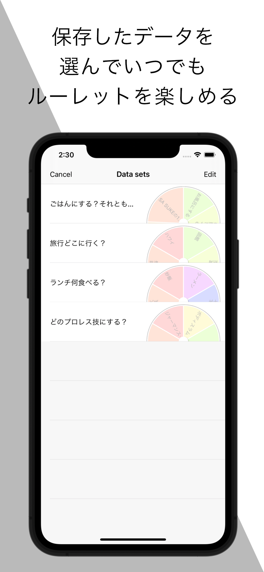 カラーボタン(左)→ルーレットの項目の色を選択できます。