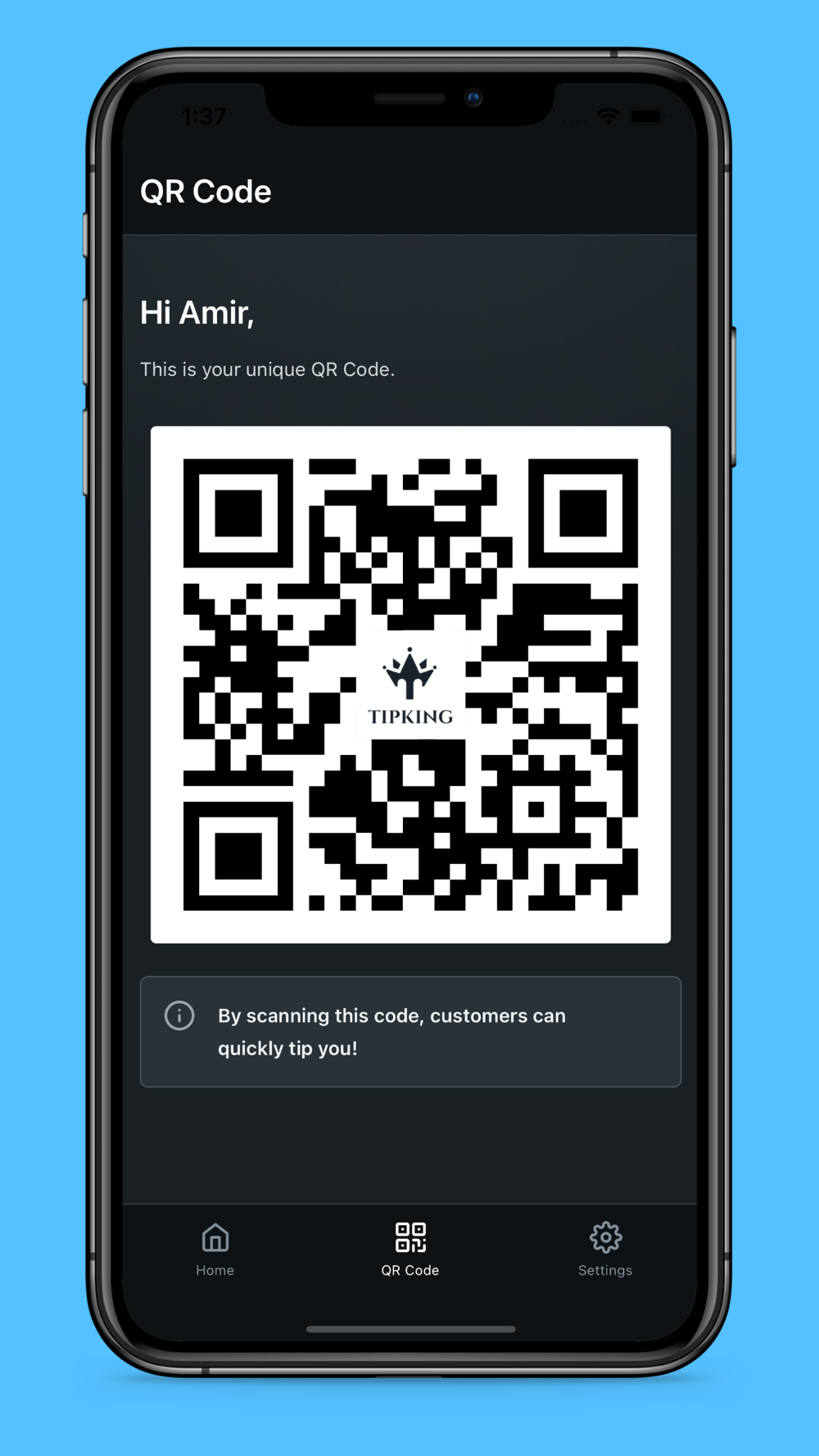 TIPKING is a revolutionary app for cashless & contactless tipping.