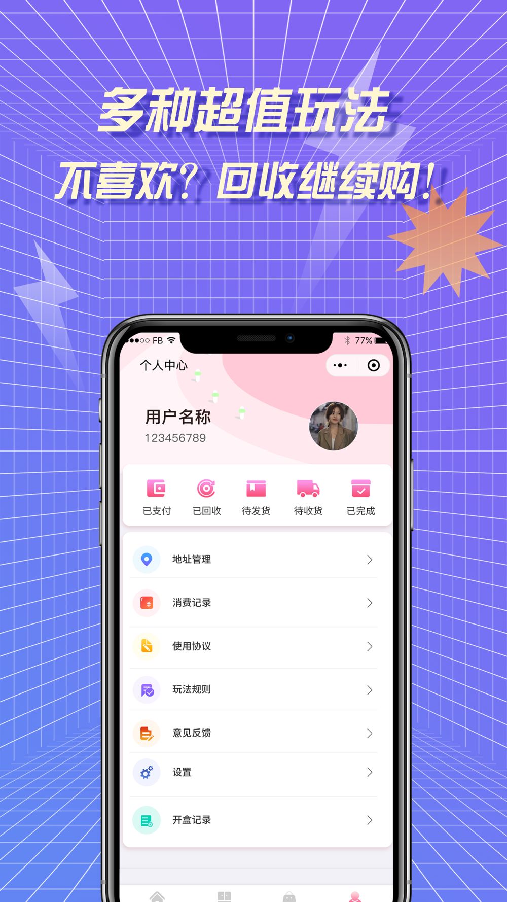 多玩盲盒App是一款为盲盒爱好者开发的可以随时随地在线抽盲盒APP。聚集各大盲盒品牌,可供用户线上抽盲盒,随时随地抽盲盒开箱,买中发货,买不中平台回收商品用户回血。