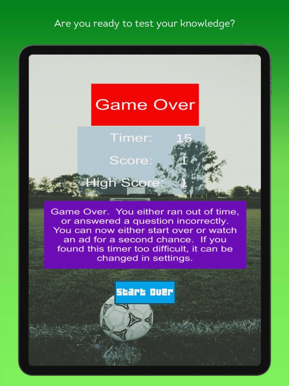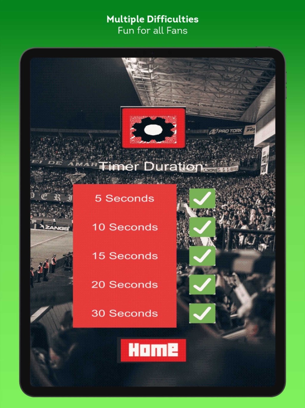 A limited amount of time is given to answer each question, to add challenge and excitement to the game. This timer can be adjusted in the settings menu.