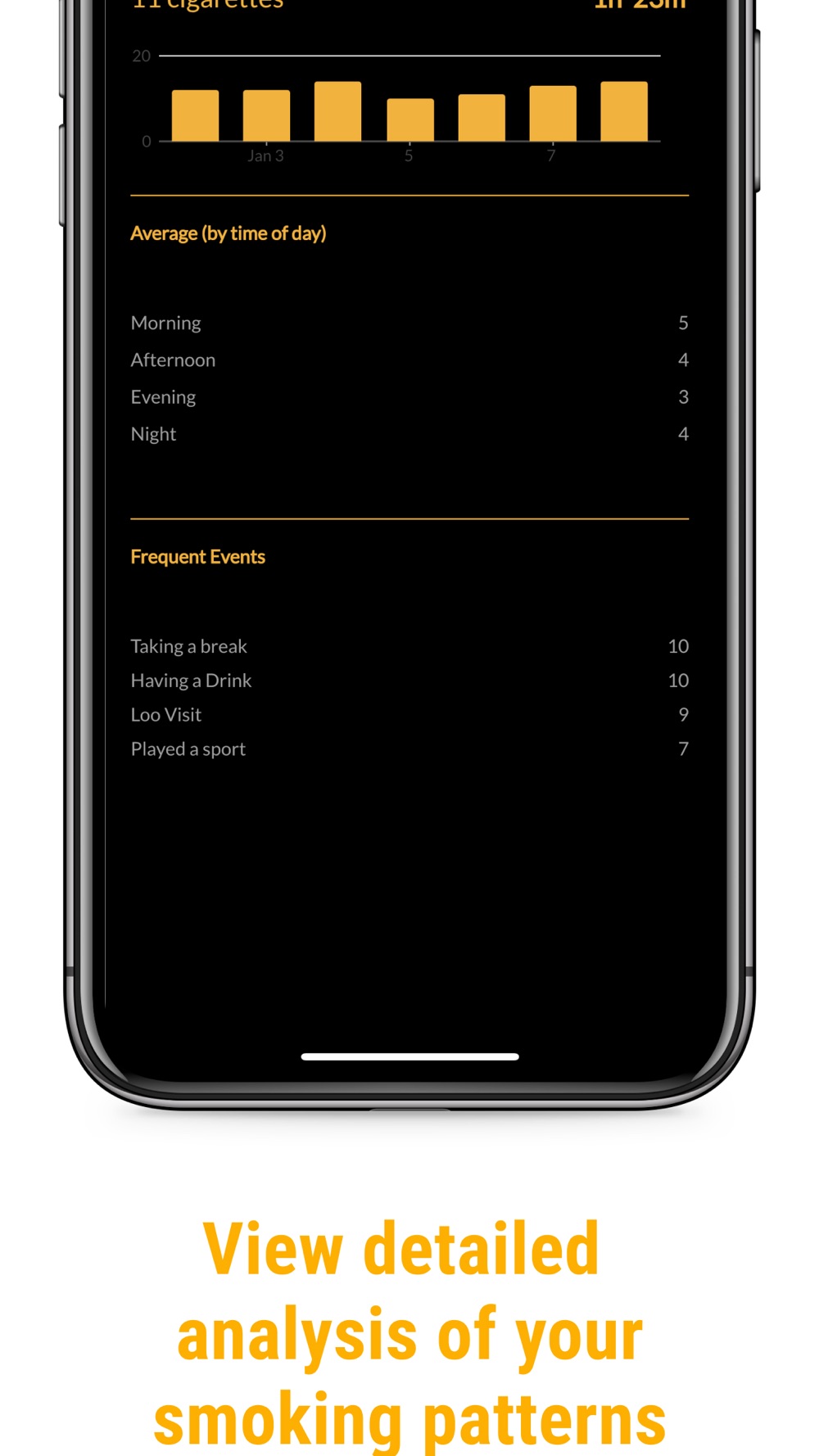 Quitting smoking is hard, we know! Or maybe you don't want to quit, but just keep it under control. Either way, the first step is to understand how much you smoke and what triggers your cravings. Break Free tracks your smoking habits and provides you with a better understanding of your smoking patterns.