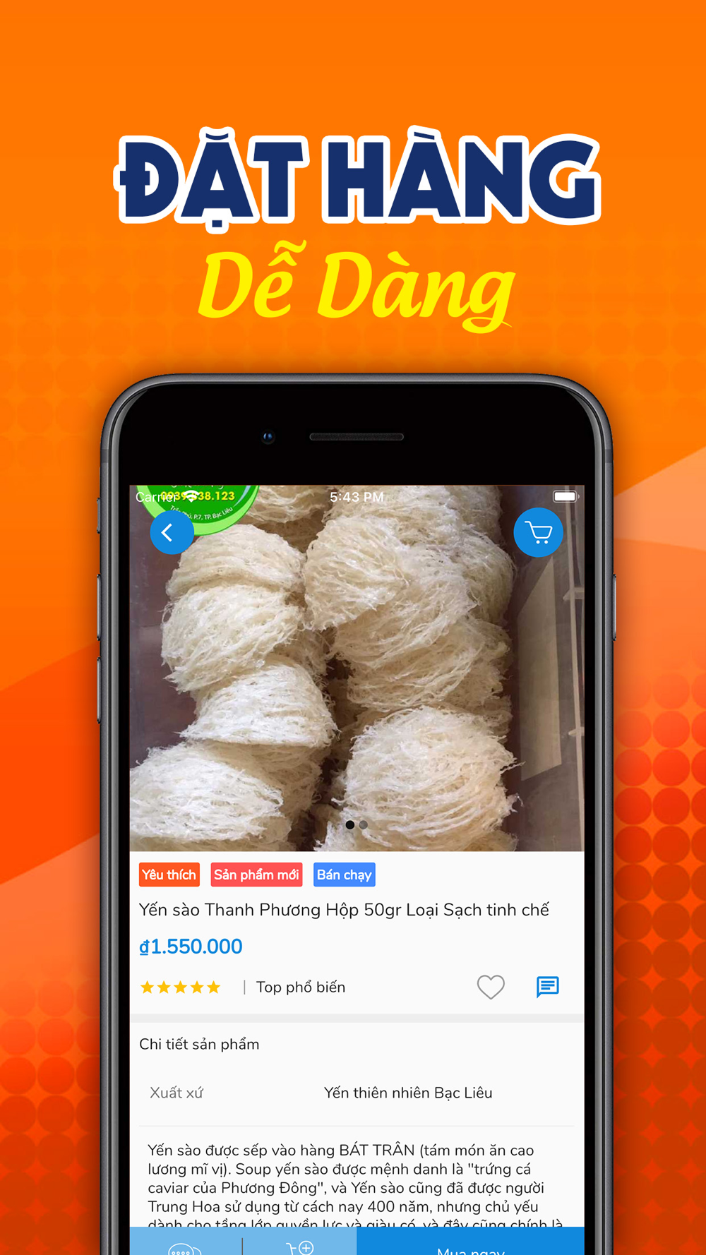 VietanFood app giúp bạn mua sắm một cách dễ dàng và tiện lợi. Bạn có thể mua hàng từ mọi thiết bị từ điện thoại, ipad, máy tính. Tính năng của ứng dụng: - Đặt hàng nhanh chóng. - Thanh toán dễ dàng. - Cập nhật khuyến mại mới nhất. - Chat trực tiếp trên app. - Tích điểm đổi quà. - Và những tính năng nổi bật khác.