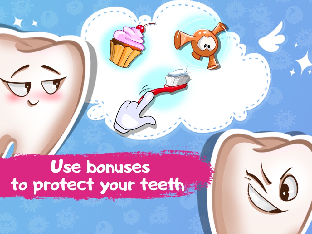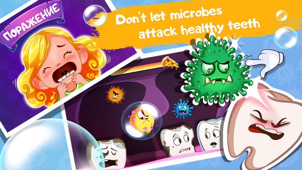 “Teeth Care” - little kid games, like a real dentist games, will make your children observing oral hygiene and brushing teeth in a timely manner. And the best way to do this is learning through play! Your children will catch germs and bacteria, and it’s a saving teeth game. Kids game for girls, kids game for boys, games for little kids and their parents, games for a whole family! It’s not bad if kids don't cope with germs - they can clean teeth and save it. A game for toddlers showing how dangerous germs are and teaching how to fight them - perfect smile!