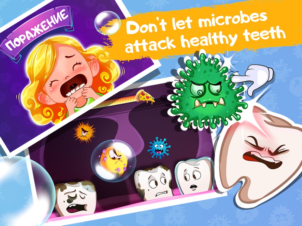 An educational kids game for girls and boys, in fact, a great activity for the whole family! Games for little boys and girls about teeth are perfect for developing skills in pre- and schoolers - the development of motor skills, coordination and accuracy, intelligence and attentiveness. And most importantly - this teeth game for little dentist teaches them how to take care of their personal hygiene! “Teeth Care” game is a real find for parents. You save teeth from germs together, kids brushing teeth and in a fun way they understand how important and necessary this is.