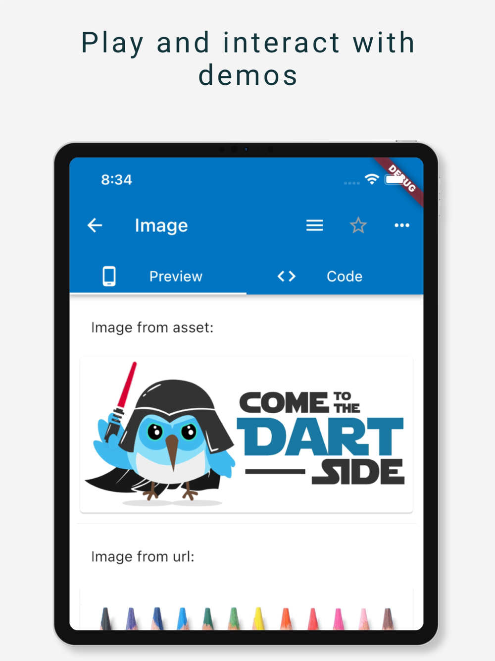 Click on list items of home page to see demos of different Flutter components, the source code is just besides the previews ! ;)