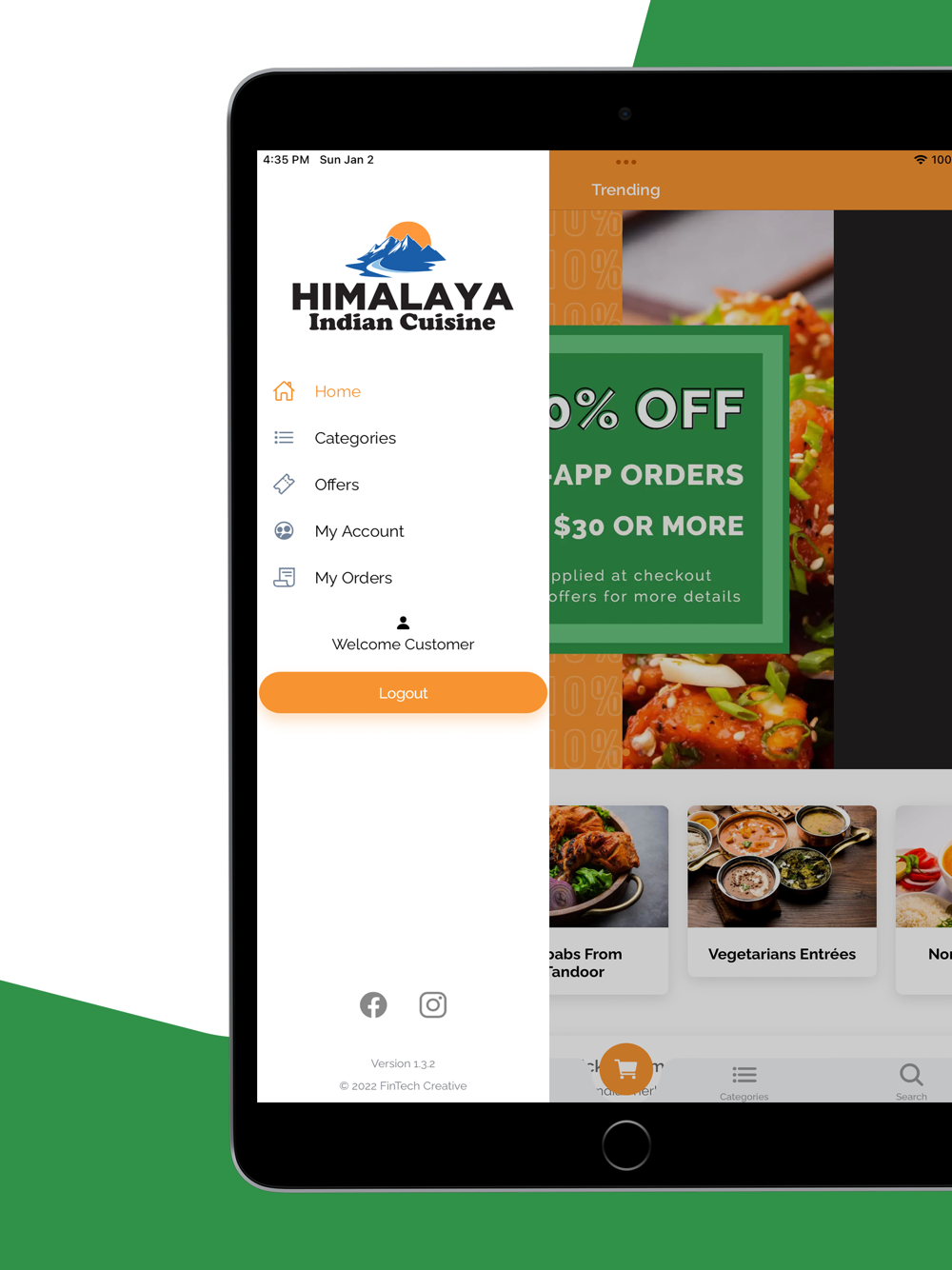 With the new Himalaya Indian Cuisine app, you can check out our current menu, special deals, trending products, and order your favourite dishes! All you need to do is log in, and you can easily and conveniently keep track of your current and previous orders, as well as your account information.
