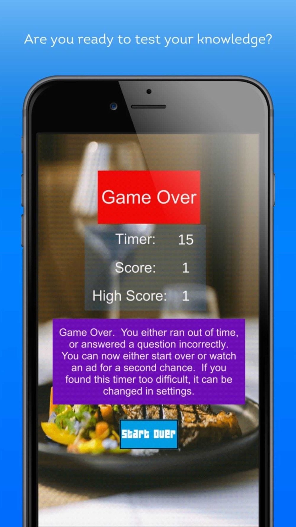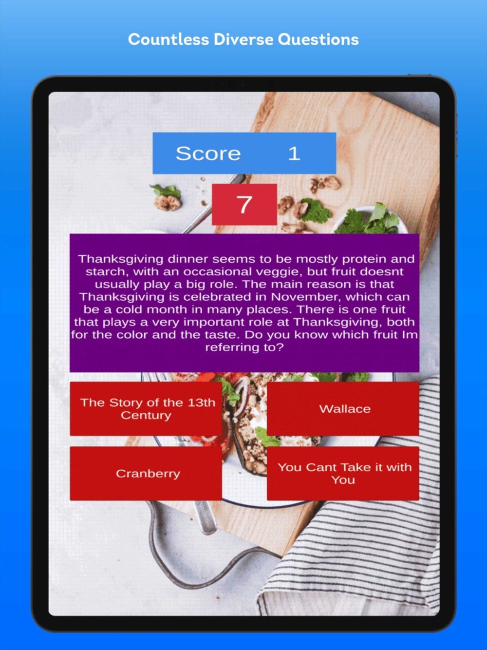 A limited amount of time is given to answer each question, to add challenge and excitement to the game. This timer can be adjusted in the settings menu.