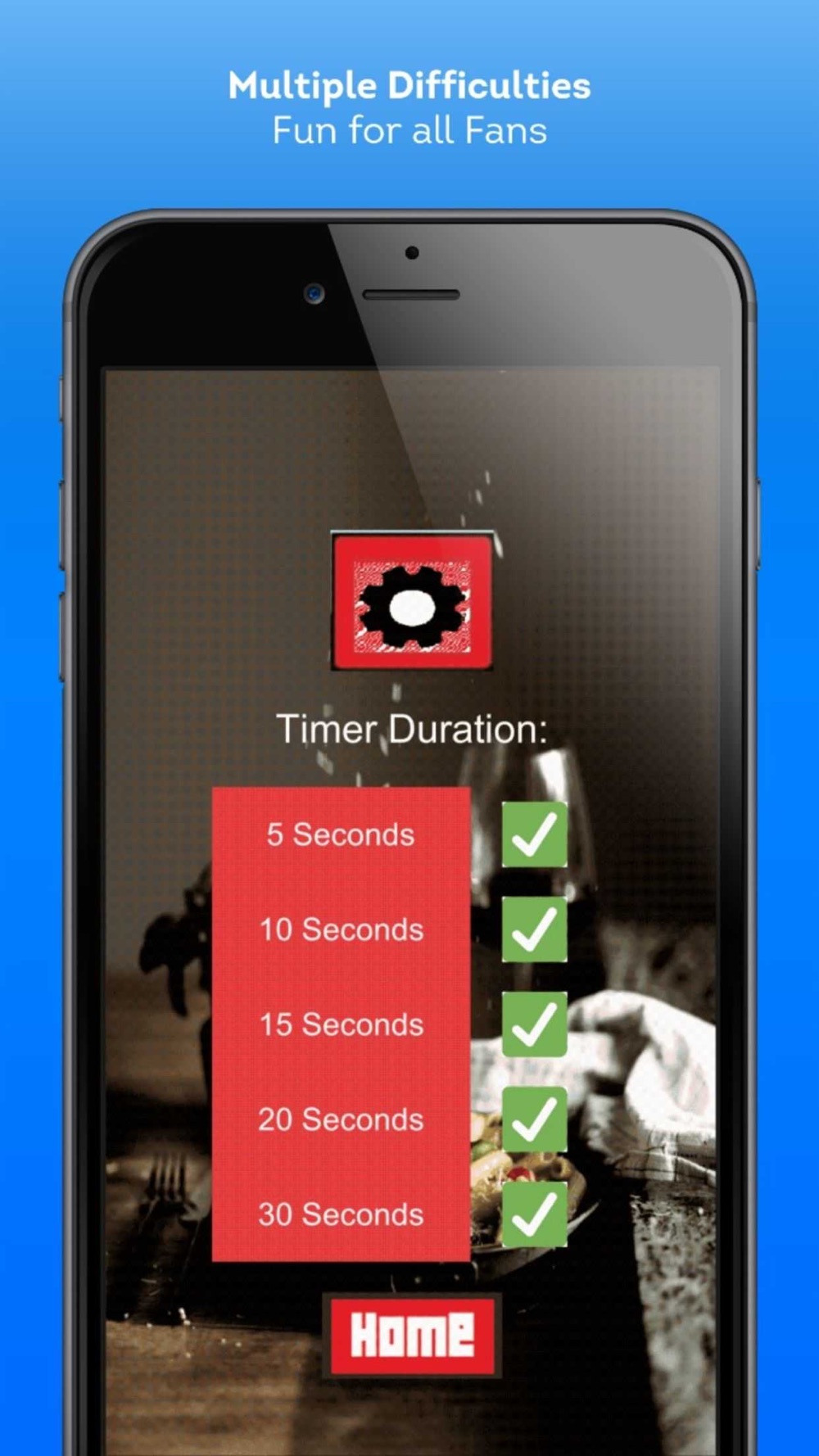 To make the app enjoyable for all players, we added the option to select a difficulty level. Difficulties are based on the timer settings.