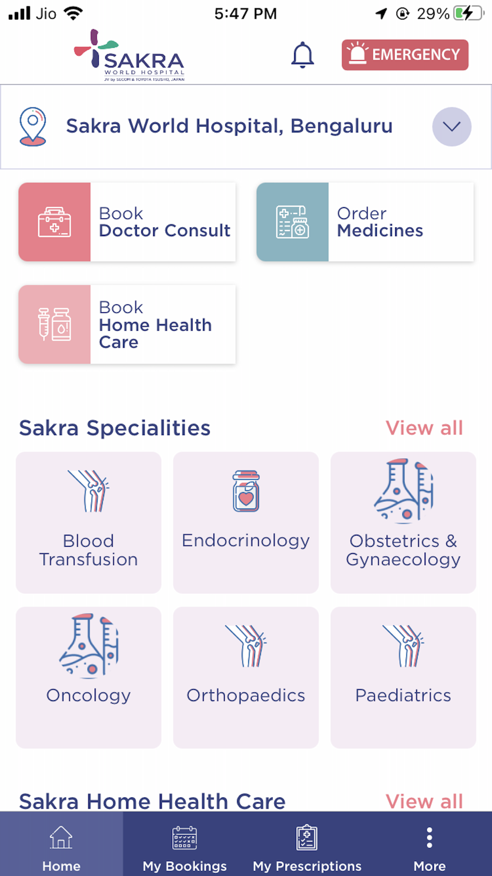The Sakra Patient app helps people across India connect with specialists from Sakra World Hospital and Sakra Premium Clinic to book appointments for doctor consults, upload documents and notes for the consult, receive post consult prescription from doctors and several other features like tracking and managing their vitals and allergies.