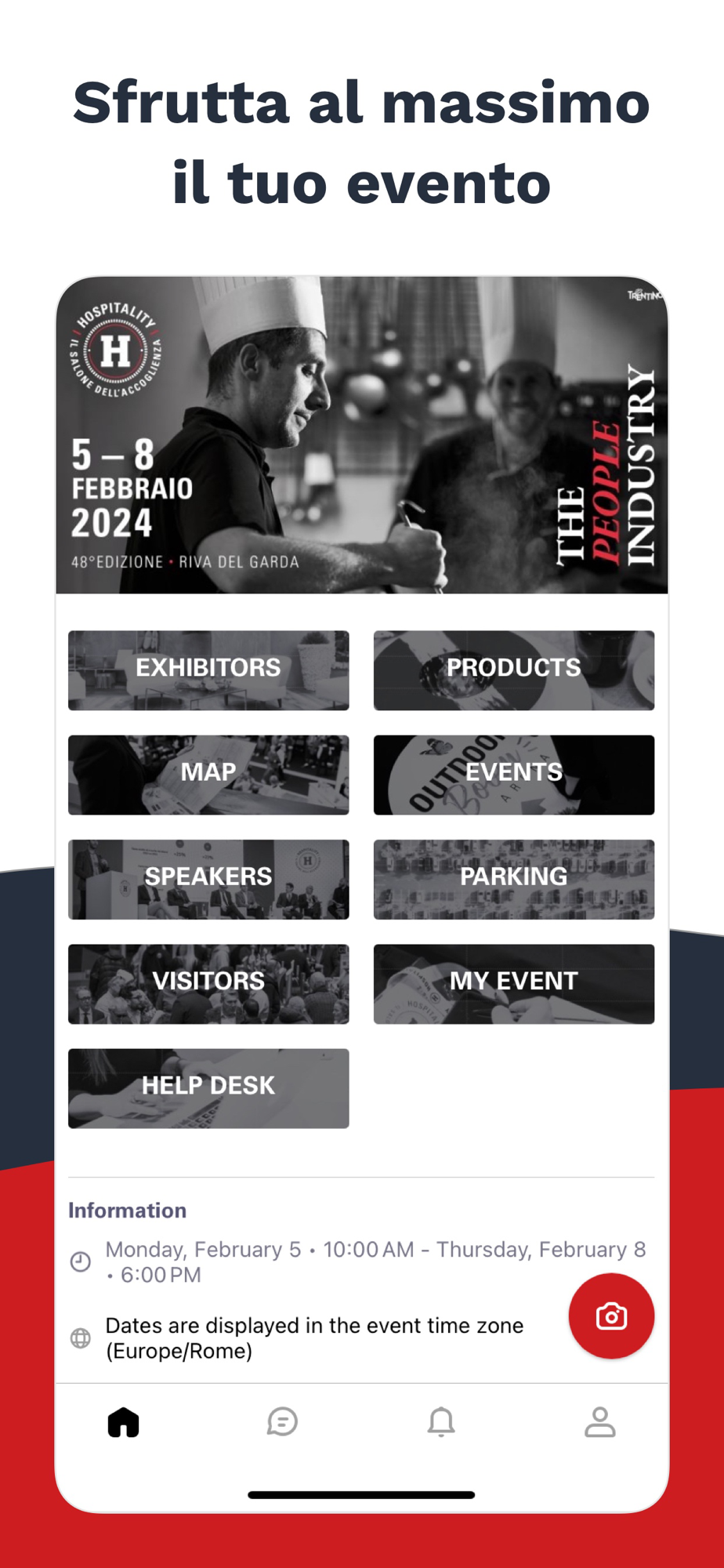The 47th edition of the most comprehensive Italian fair dedicated to hospitality and catering goes live at the Exhibition Center of Riva del Garda from February 5 to 8, 2024. The ‘place to be’ for professionals, Hospitality is aimed at a business audience - people who visit the Hospitality Showroom to broaden their network of suppliers and partners, find new solutions for their business and stay up-to-date thanks to the Academy.