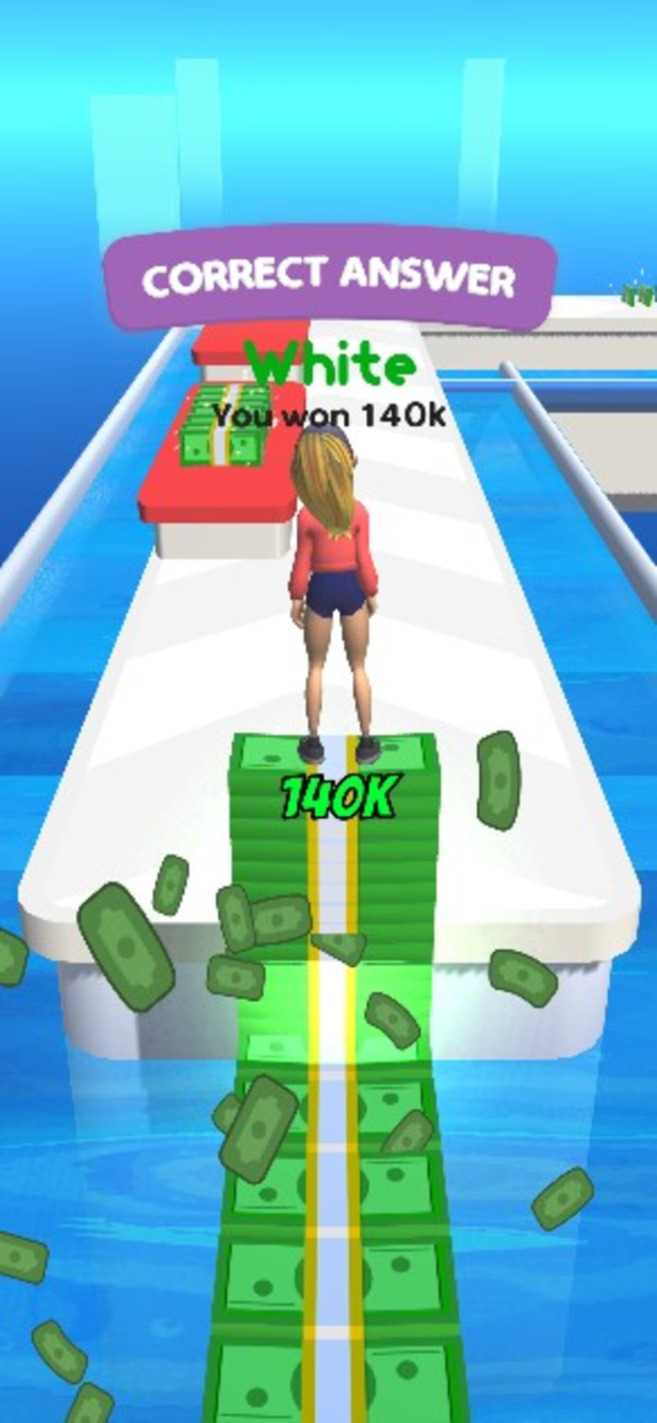 Money Run Trivia: Collect money, bet money for both or a single answer, win or lose...
