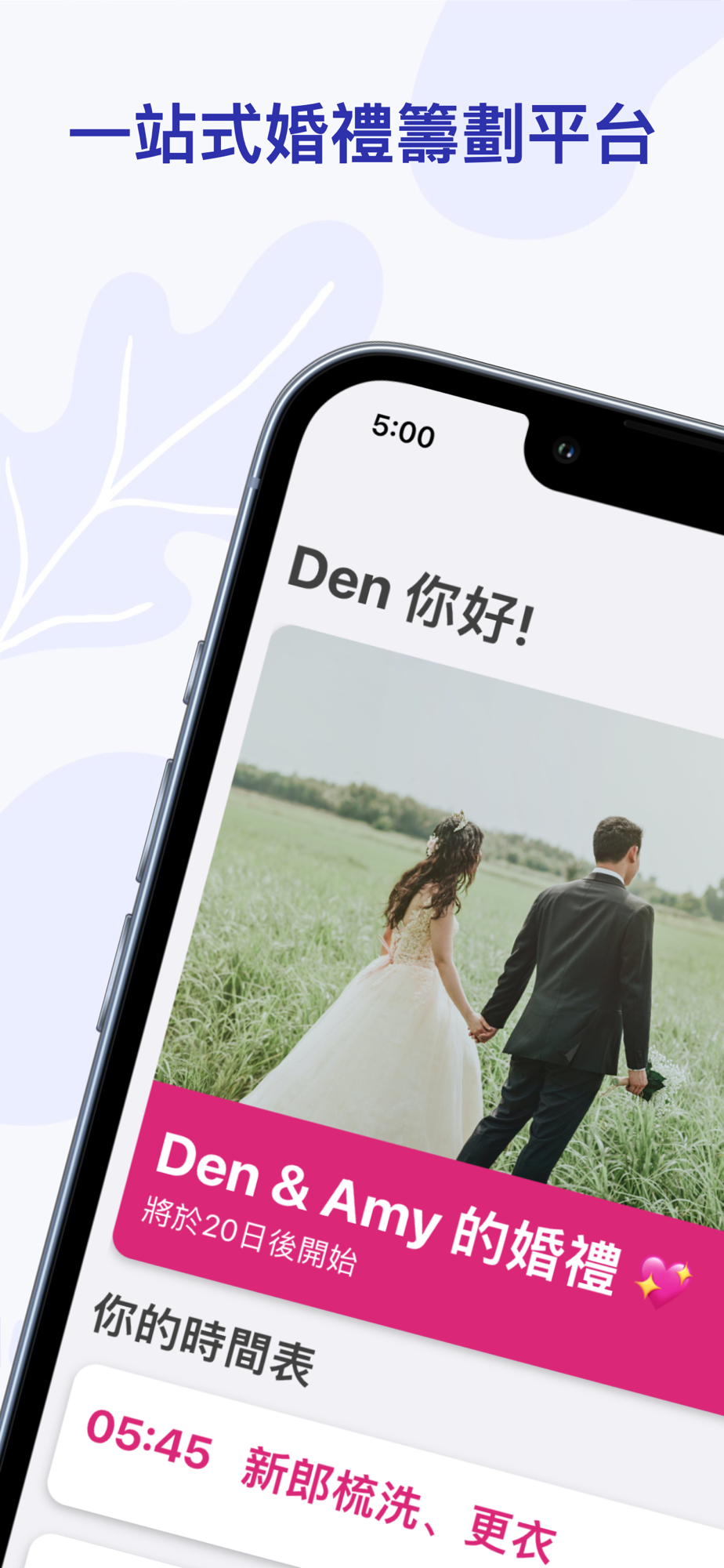 Weddie 是為香港人而設的一站式婚禮規劃及籌備平台,讓準新人輕鬆處理預算、來賓名單、日程表、當日流程、座位安排等,更可加入兄弟姊妹及其他工作人員,於婚禮當天接收實時訊息通知,保證萬無一失。一app在手,婚禮無愁!