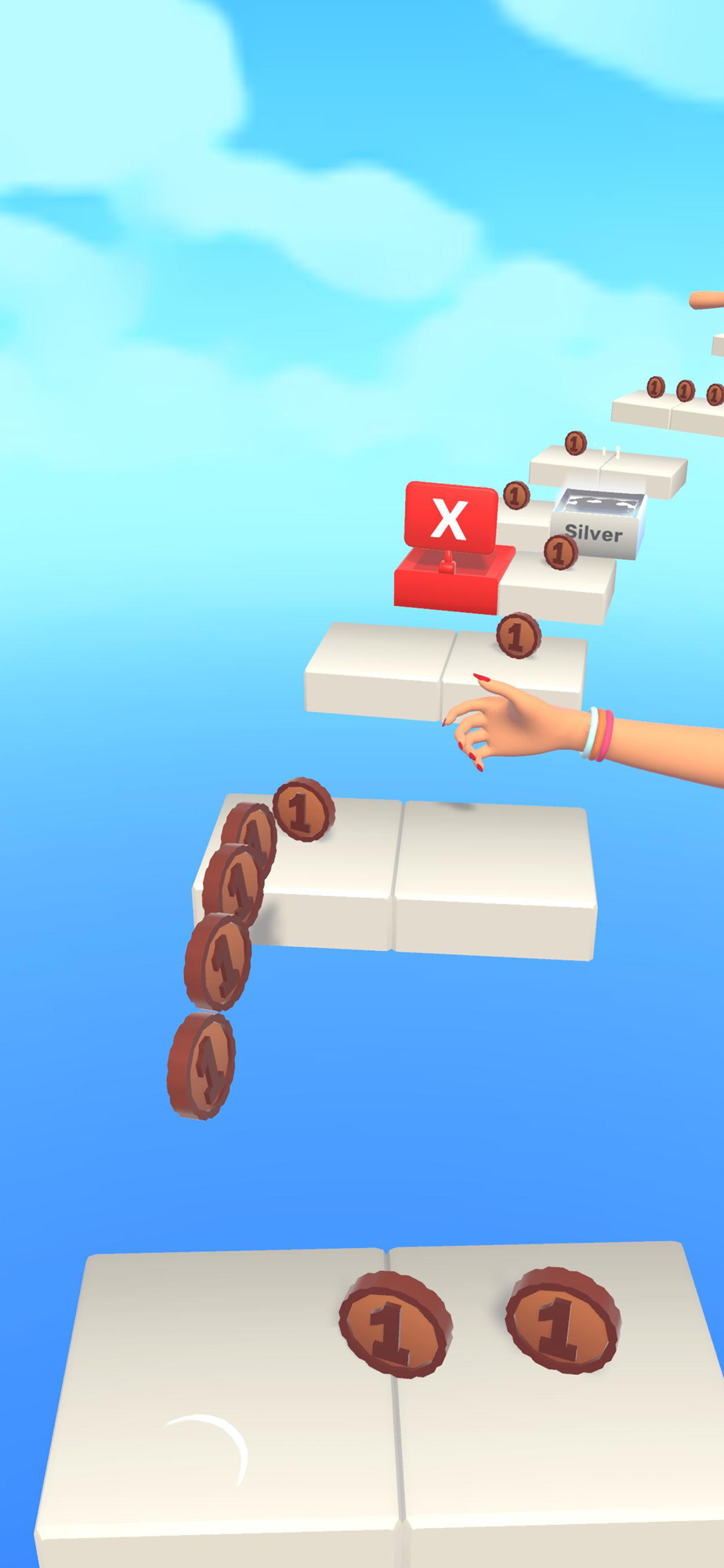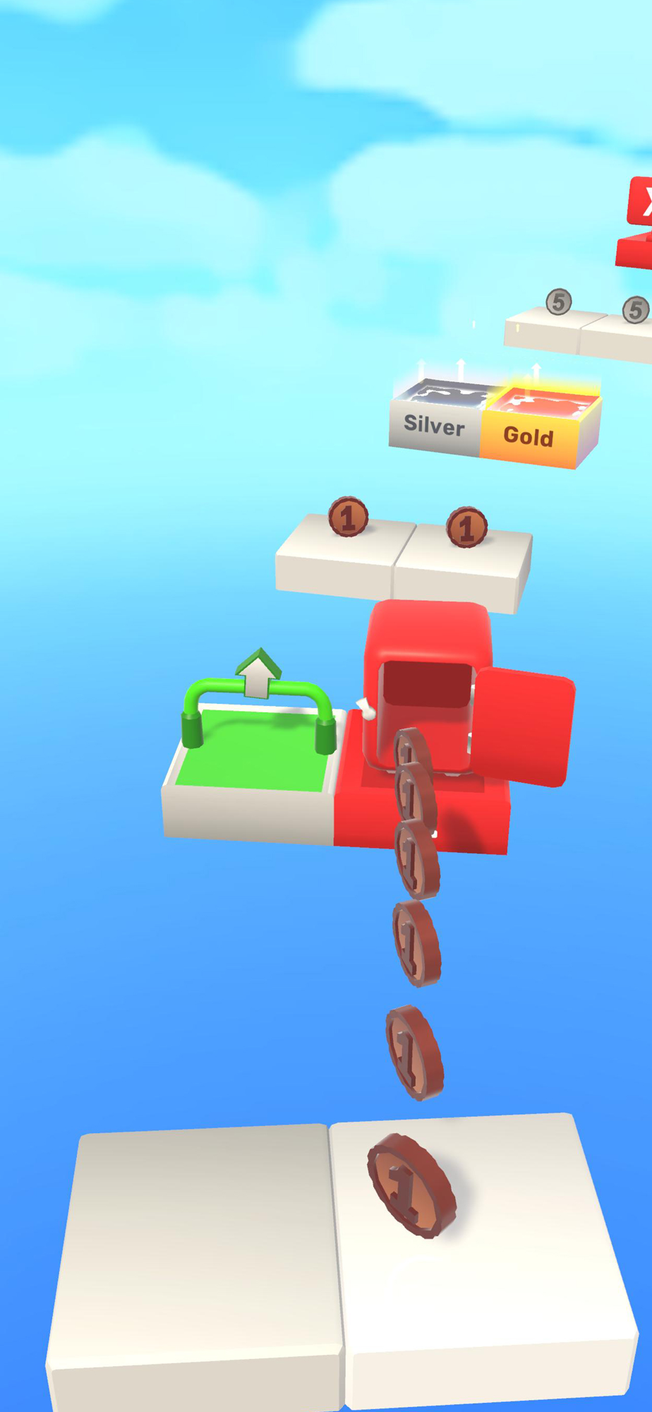 Collect and multiply coins by climbing the stairs.