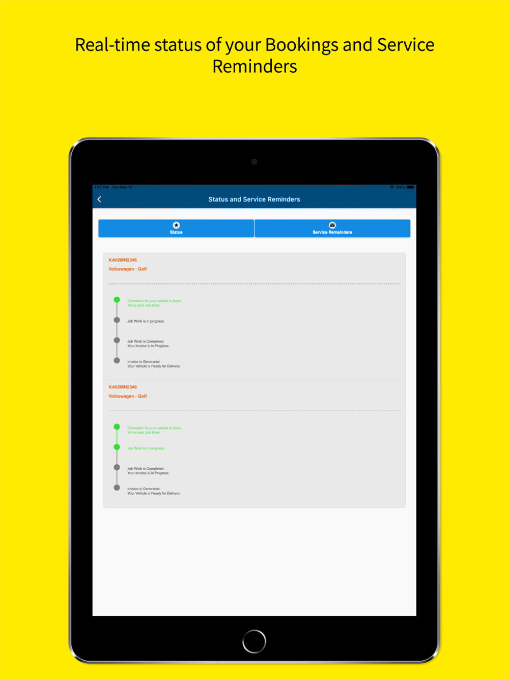 Experience hassle free automobile servicing , real - time tracking, appointment booking, service history and more with this app.