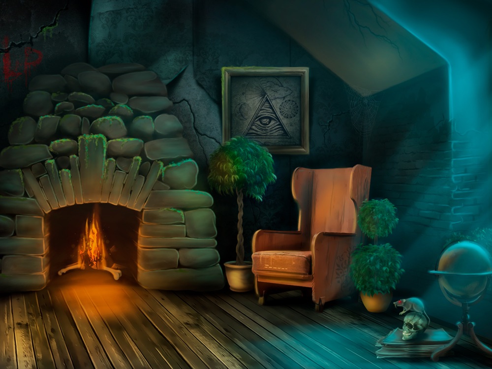 The game features mystical creatures, ghosts, skeletons, zombies, dark silhouettes, reptilians and other characters. Wandering around the old house, you can see the symbols of the Freemasons and Illuminati. Horror adventure, darkness and horror await you in this scary house.