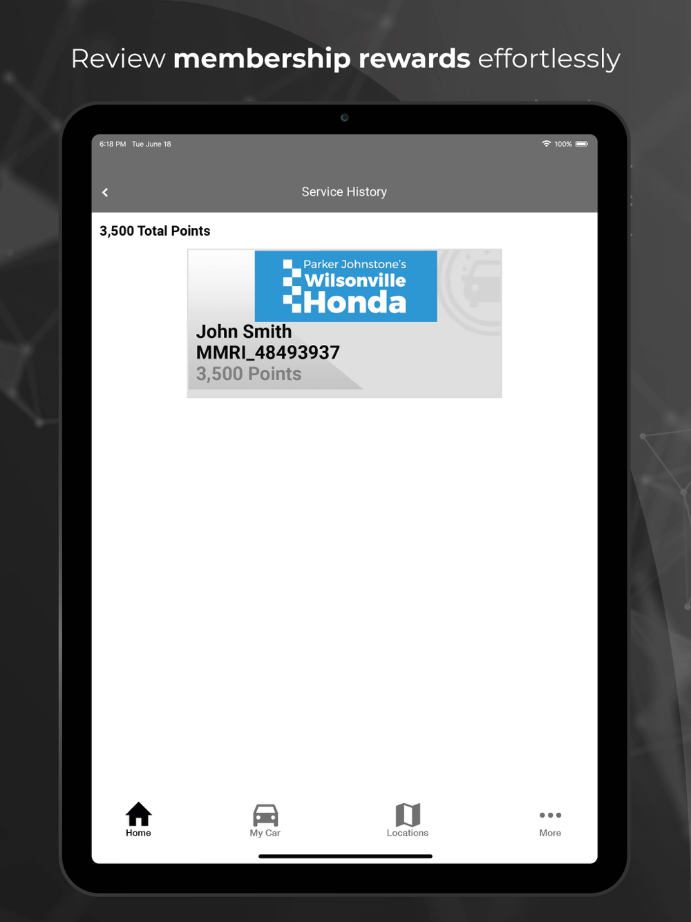 The Parker Johnstone’s Wilsonville Honda Advantage Mobile App is designed for customers of our Parker Johnstone’s Rewards program. The dealership has locations in Wilsonville OR. This app allows you to view and track your participation in the dealership's Rewards program and to view the service history of your vehicle. In addition, you are eligible for exclusive deals on service made available only to Mobile App Users!