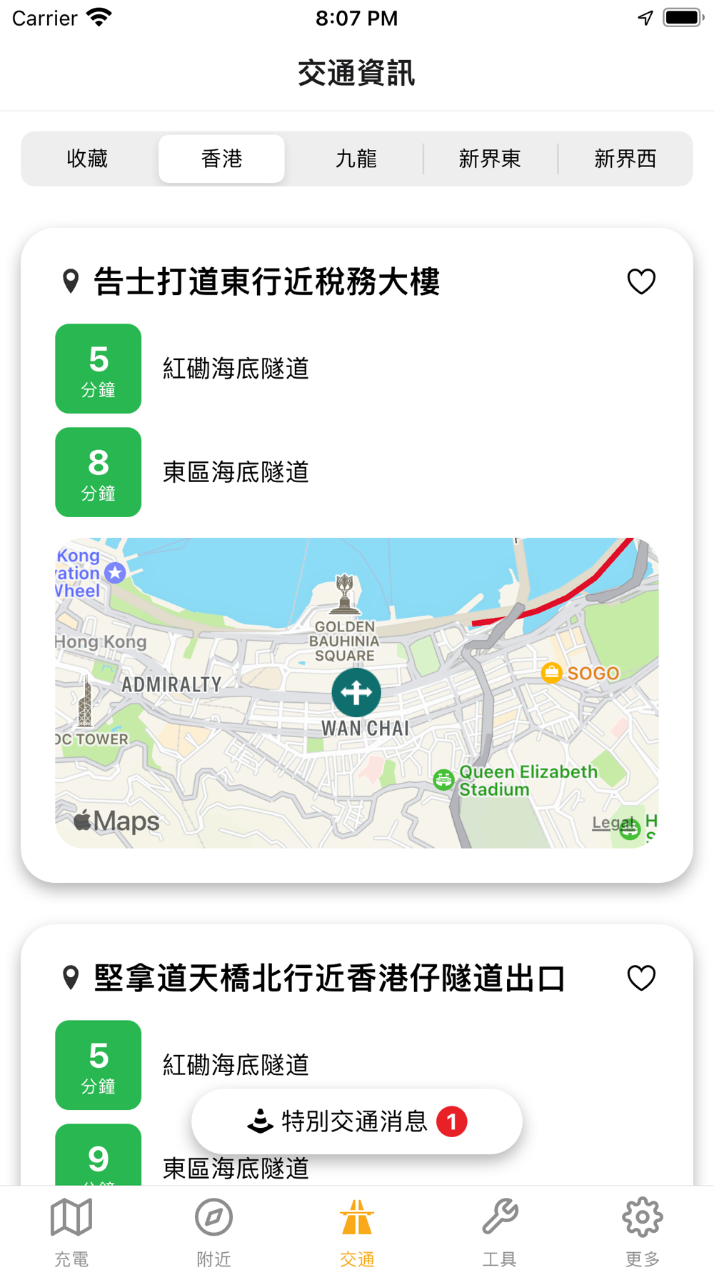 過海時間按目的地分類,一眼睇晒行邊條隧道好