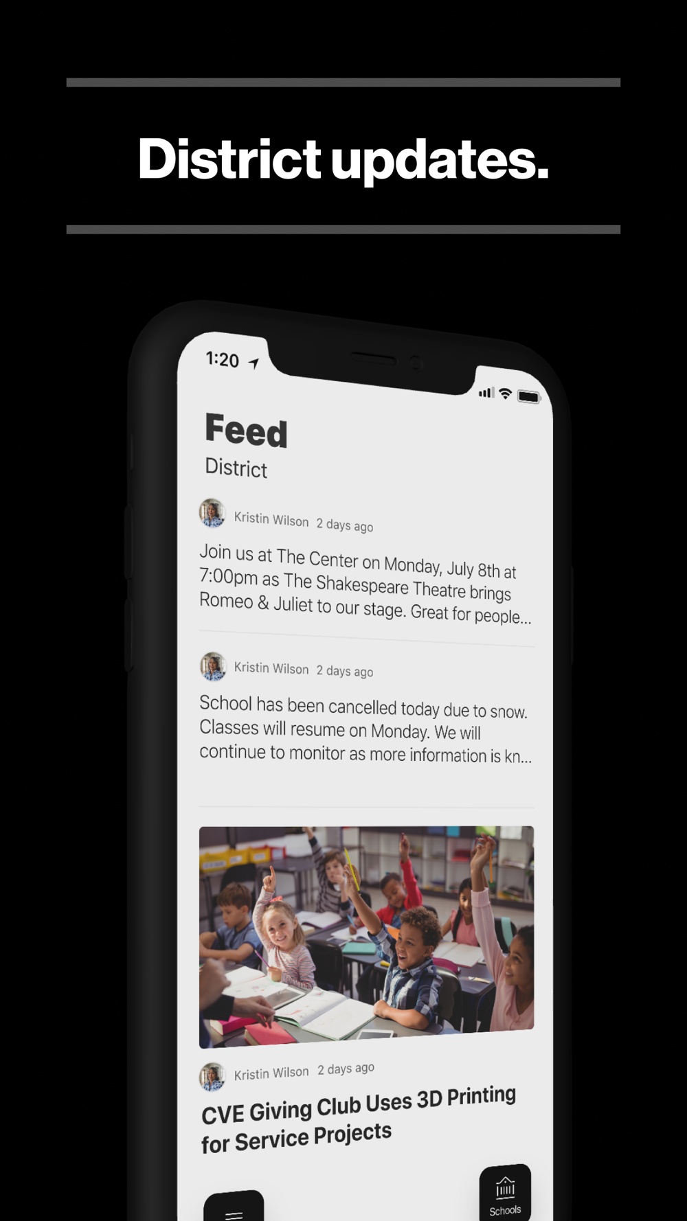 In the Live Feed is where you’ll find updates from the administration about what’s going on in the district right now. Whether that’s celebrating a student’s success, or reminding you about an upcoming deadline.