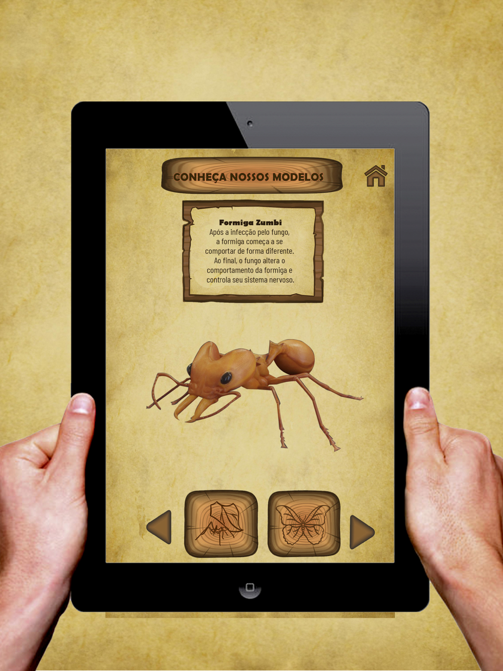 Na exposição já existente adicionamos 5 AR Code de 5 animais para que o visitante possa conhecer os insetos ali na sua frente.