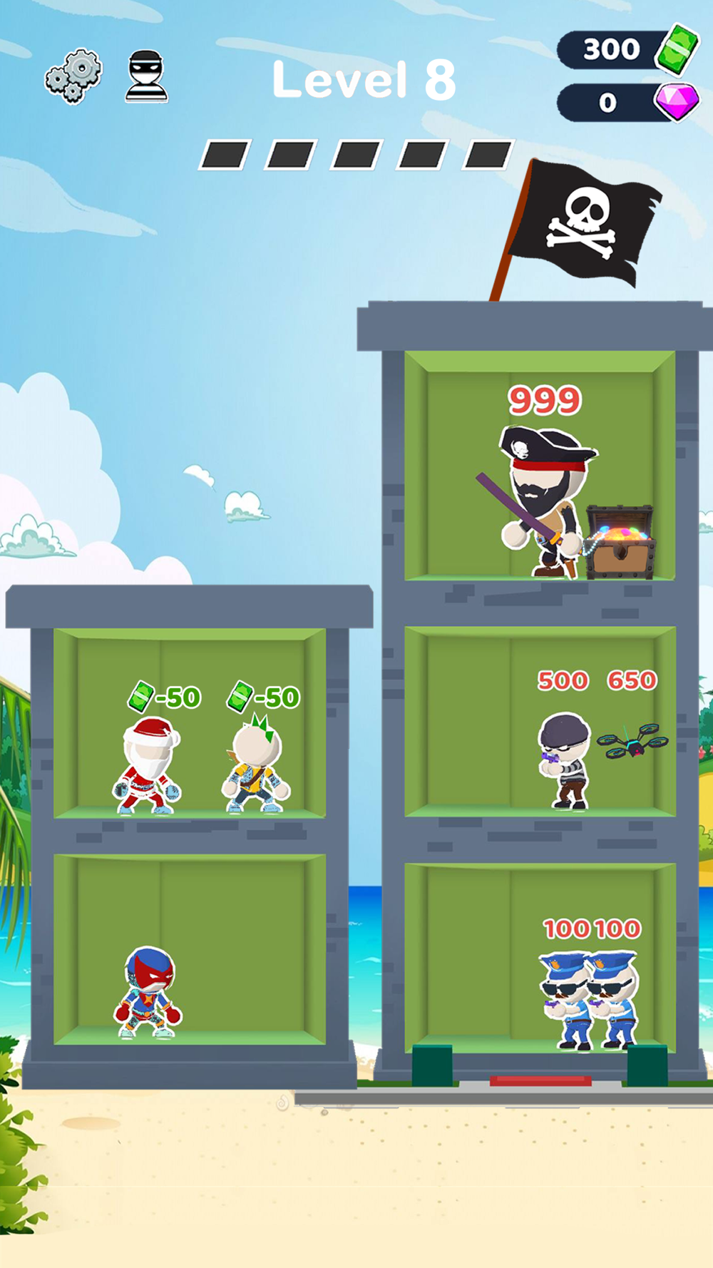 Many guards are defending the tower. Your mission is to defeat them and take back the stolen treasure. There are multiple types of weapon you can choose to help you break into the tower.