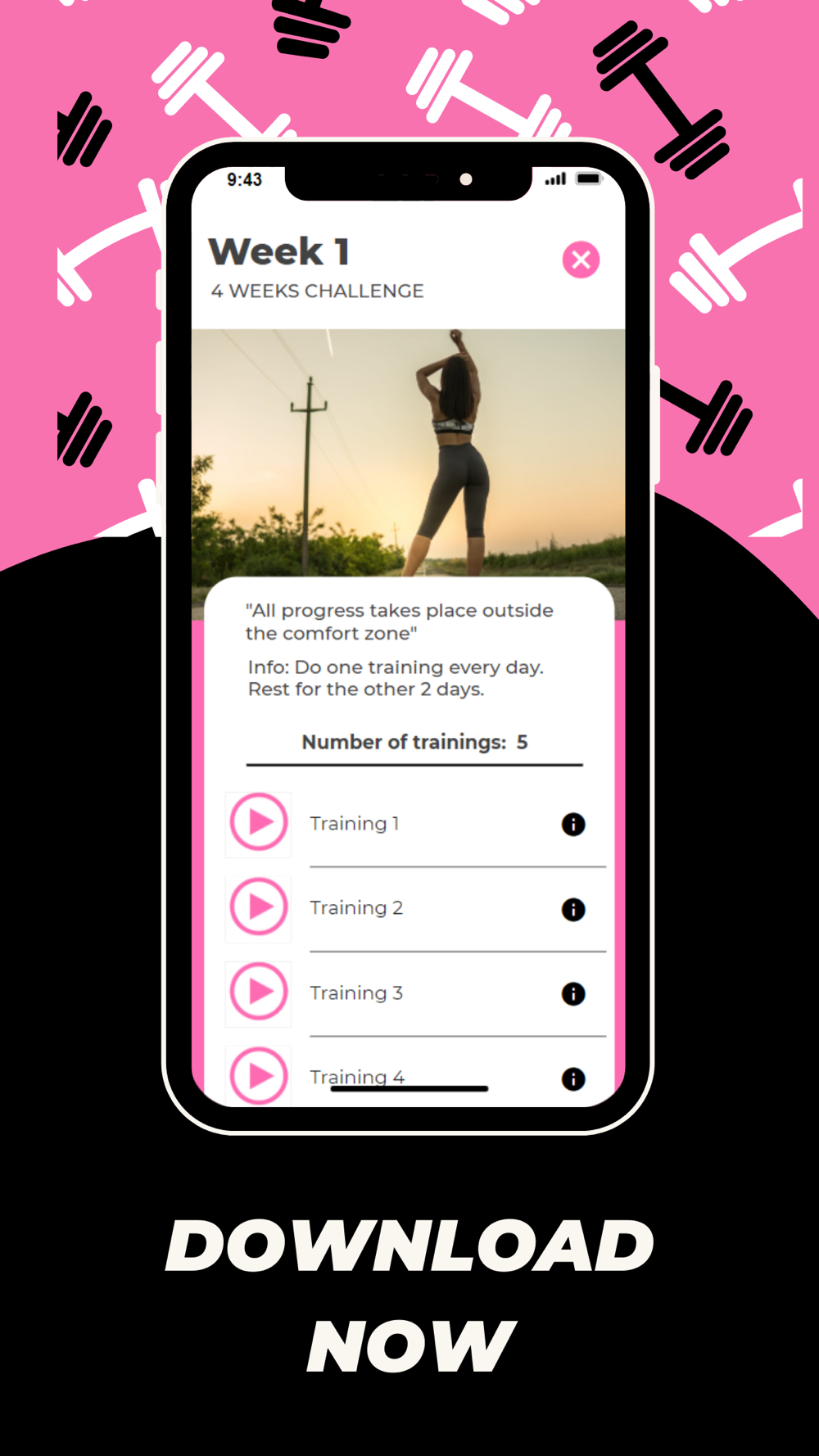 The application works on the principle of pre-recorded workouts that you can watch and train divided into 4 weeks.