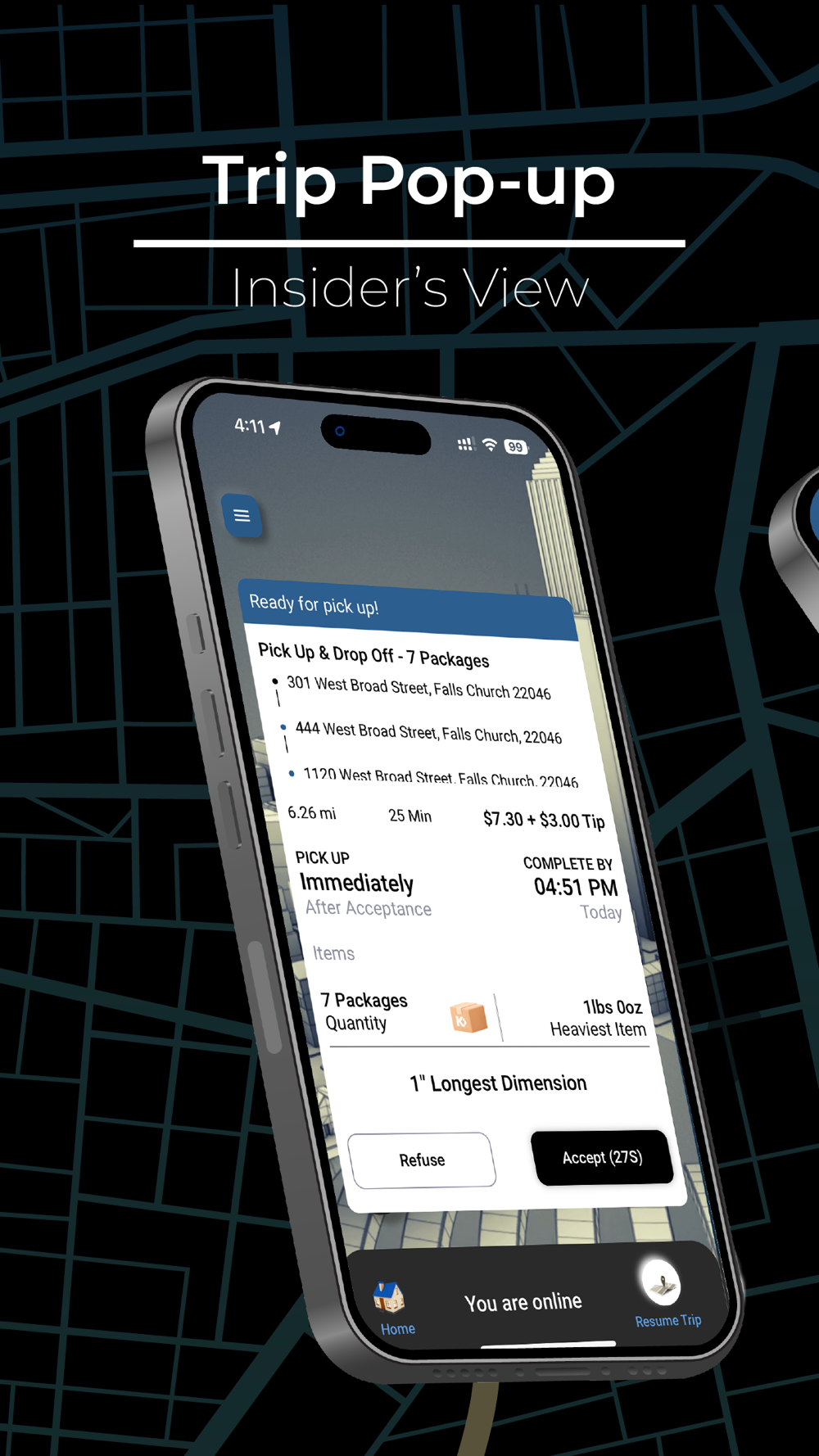Receive real-time notifications for new pick-up opportunities and unlock more earning potential with batched deliveries, streamlining your route.
