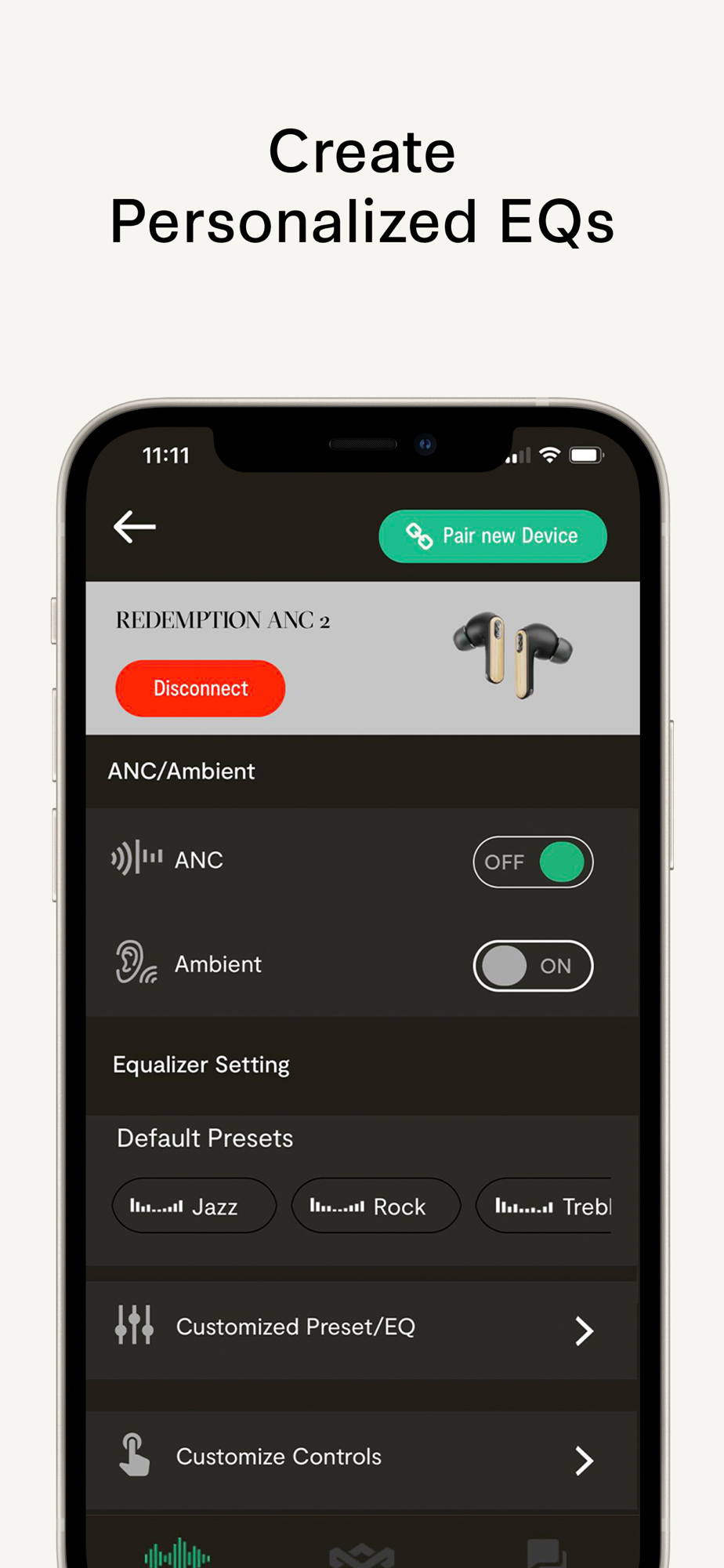 Explore classic EQ profiles like Bass Boost and Acoustic to find the perfect balance tailored to you, or create your own custom EQ to personalize your experience.