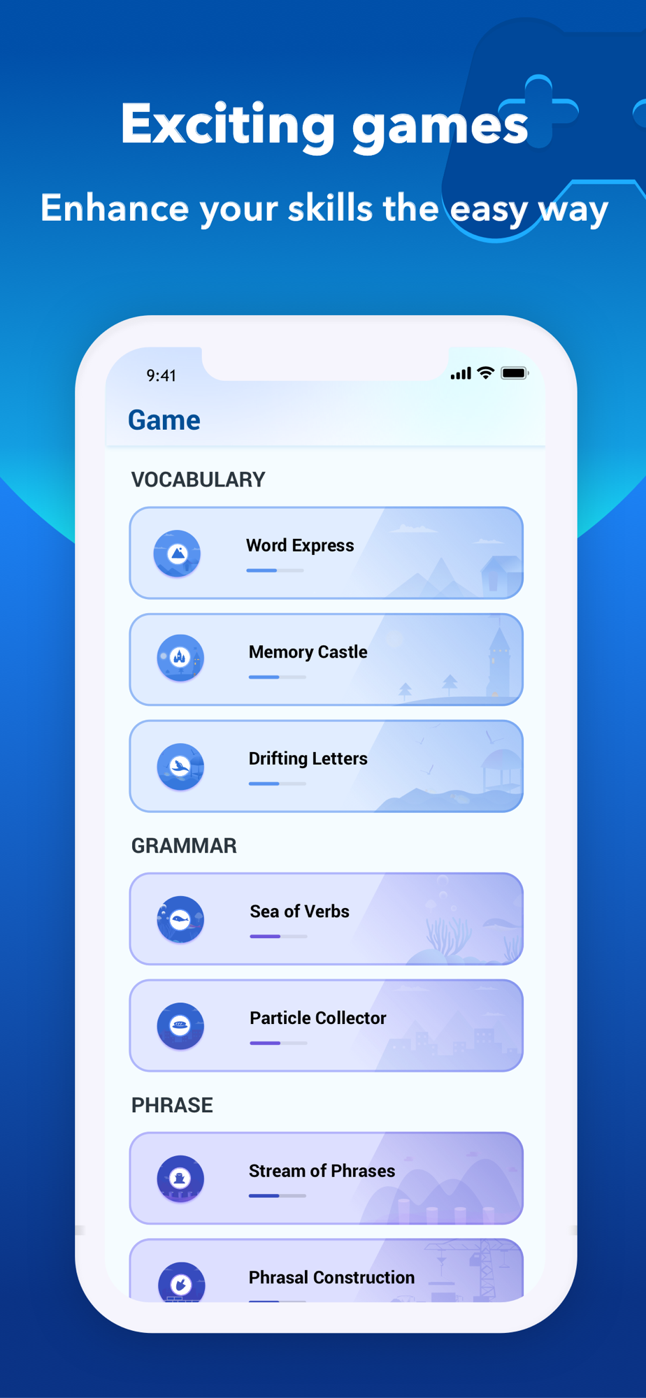 for vocabulary and grammar practice. If you need motivation to keep learning, look no further! FluenDay games are intuitive, addictive, and capable of reinforcing key knowledge points as fast as any flashcards. Even five minutes a day is enough to keep you on your language learning toes with FluenDay games!
