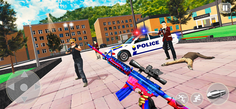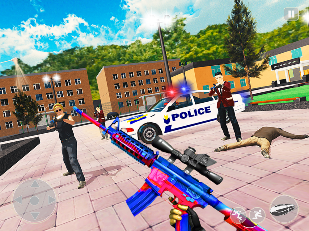 Some Grangsters are creating terror in the school and are very dangerous. Your mission is to enter in the school and eleminate all the gangsters.