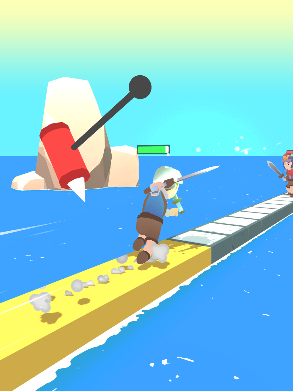 The warriors fight each other with fast pacing on tiles road and collect items to upgrade the weapons and make it to the end.